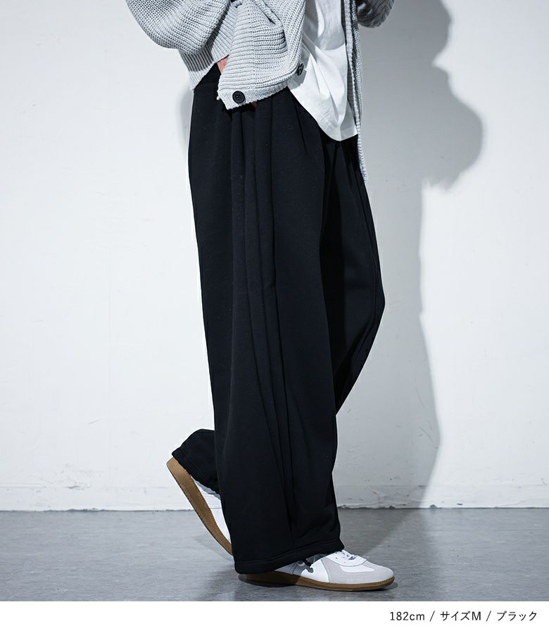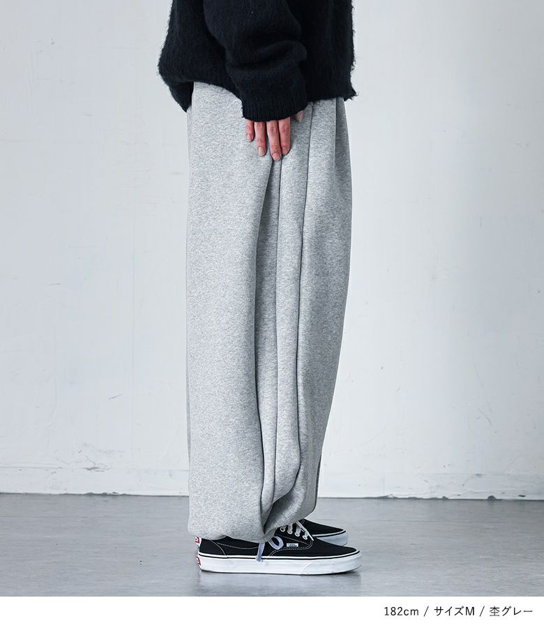 選べる2サイズ展開!しっかりとした厚みのある裏起毛生地を使用したワイドパンツ。