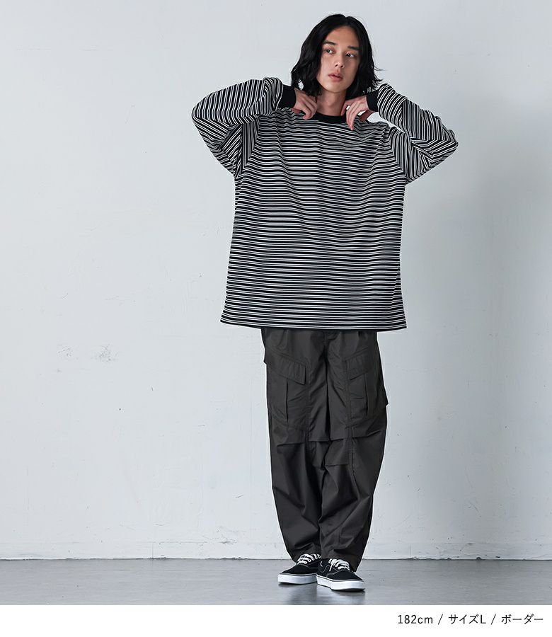 【普段着用】 Tops: L Bottoms: L/LL | 【M】 袖丈:手の甲真ん中位 着丈:ヒップ真ん中より上位 腕周り:ややゆったり バスト:ややゆったり 全体:ややゆったり