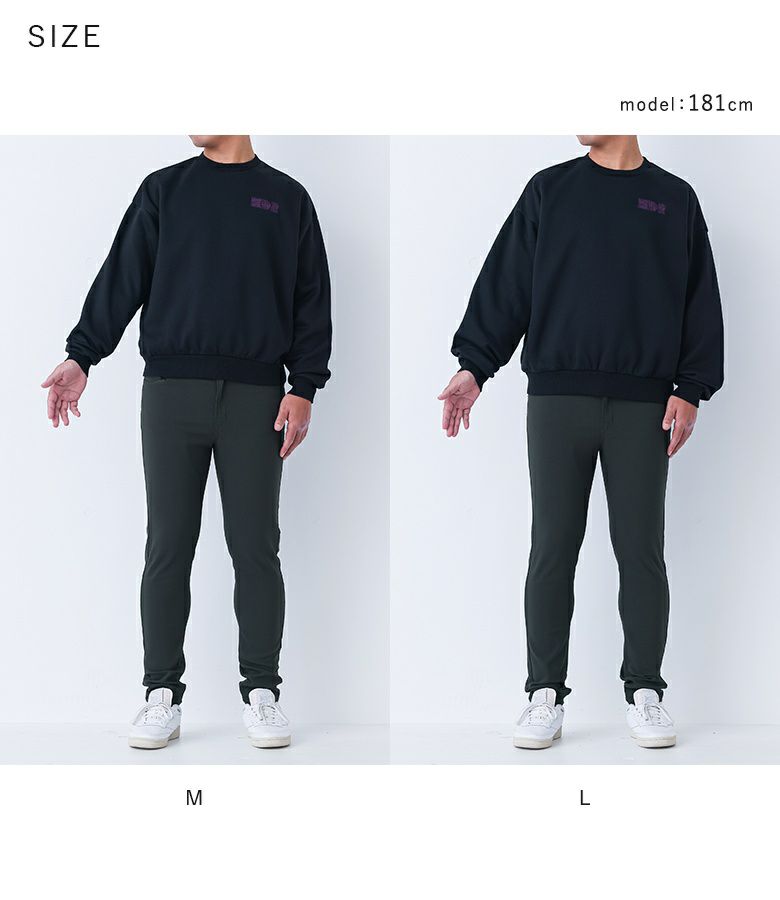 【普段着用】 Tops: L Bottoms: L/LL | 【M】 袖丈:手首位 着丈:ヒップにかかる位 腕周り:ややゆったり バスト:ジャスト 全体:スッキリ