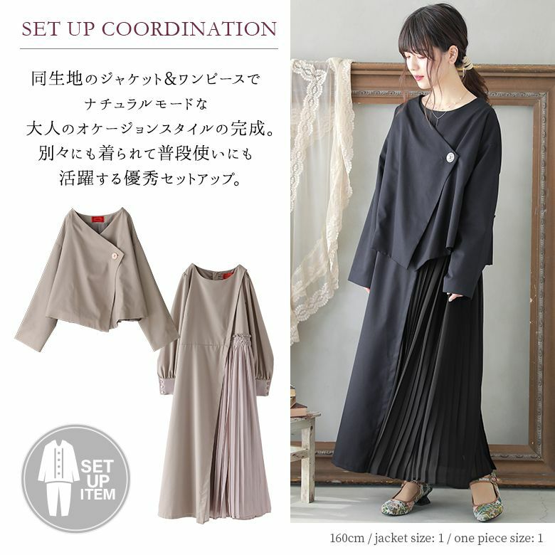 洗練印象ジャケット×ワンピースセットアップ。