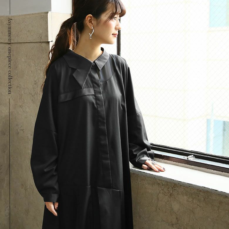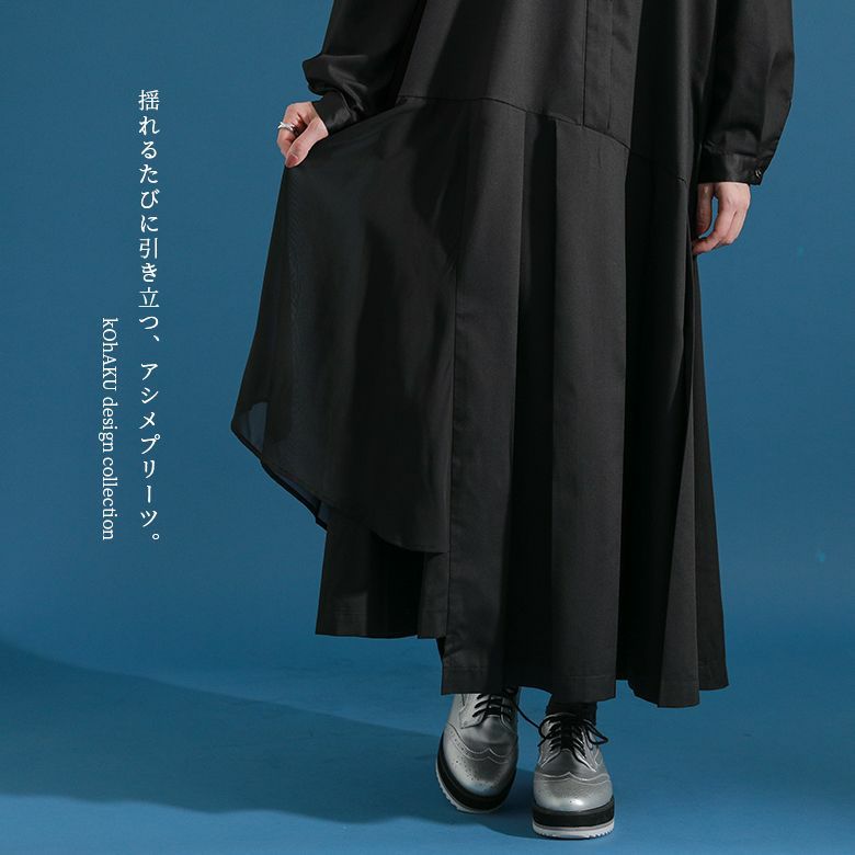 洗練された個性を創り上げる≪kOhAKU≫変形襟アシメプリーツワンピースです。