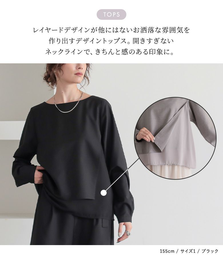 フォーマルもカジュアルな装いも一着でお洒落に決まる、さらっとしたハリのある上品なスーツ生地×とろみ感のある上質なシフォンのドッキングデザイン。