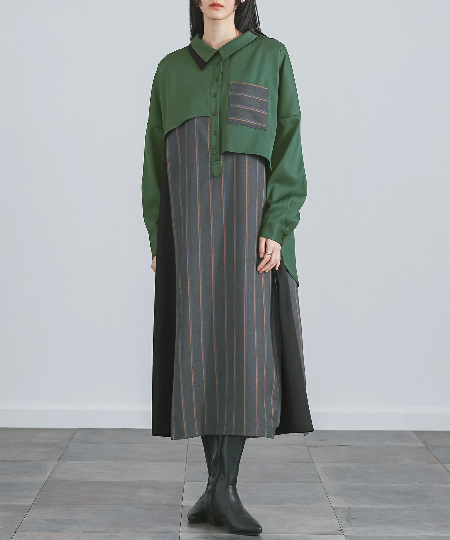 他の画像を見る 選べる2サイズ展開!一枚でお洒落が決まるモードなドッキングワンピース。 『kOhAKU異素材ドッキングバルーンワンピース』【メール便不可】【30】 ¥ 7,980 税込 4.00 (1)