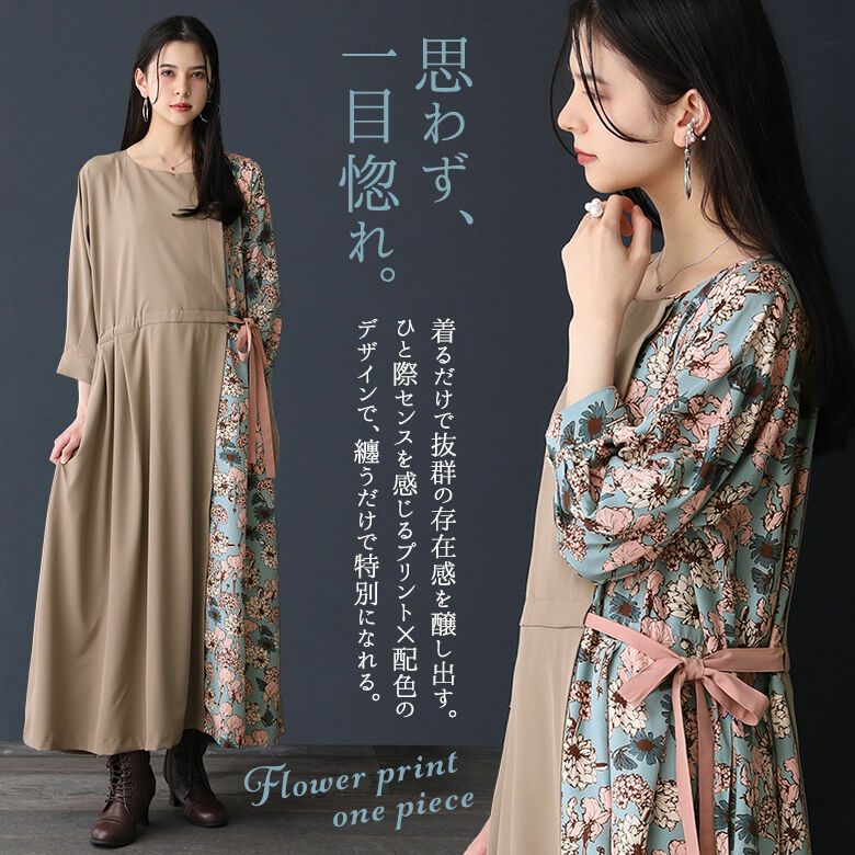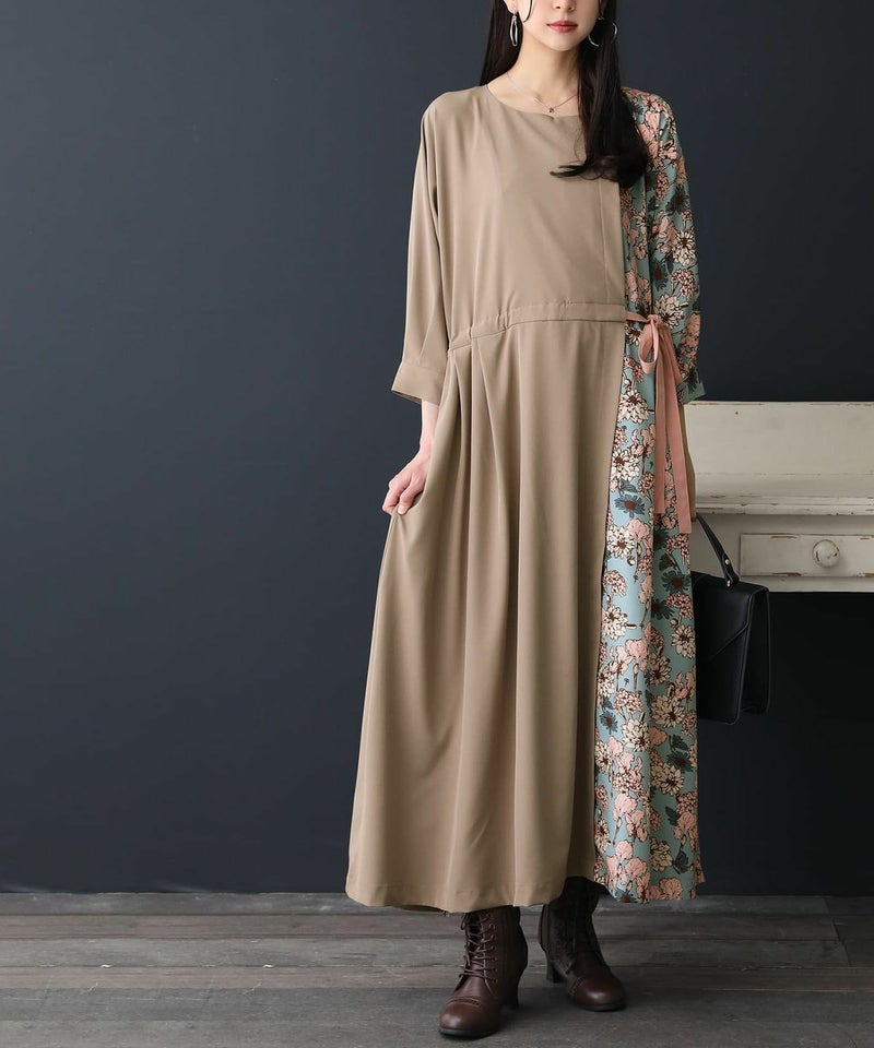 特別感を醸し出す花柄×無地ロングワンピース♪