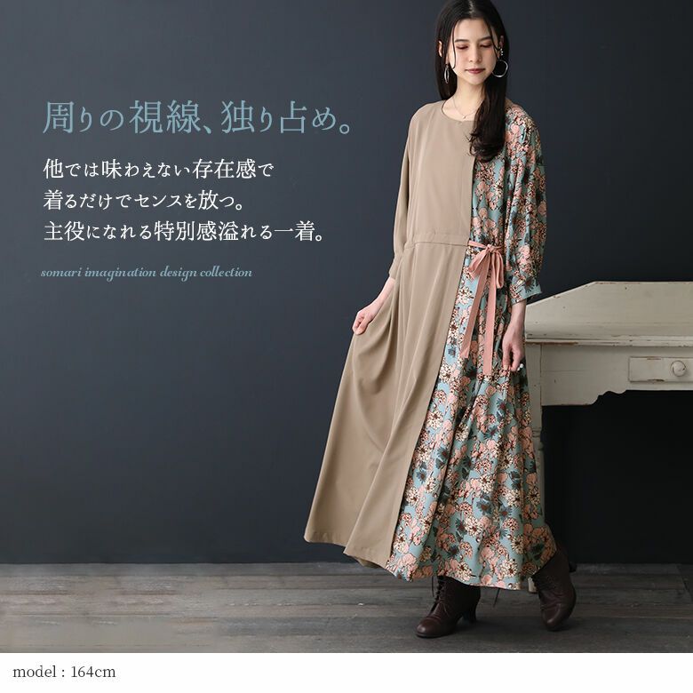 この存在感、他では味わえない≪somari imagination≫異素材MIXフラワープリントワンピースです。