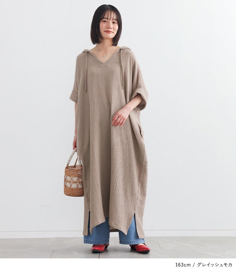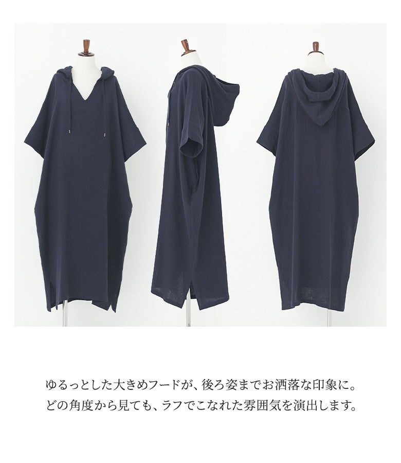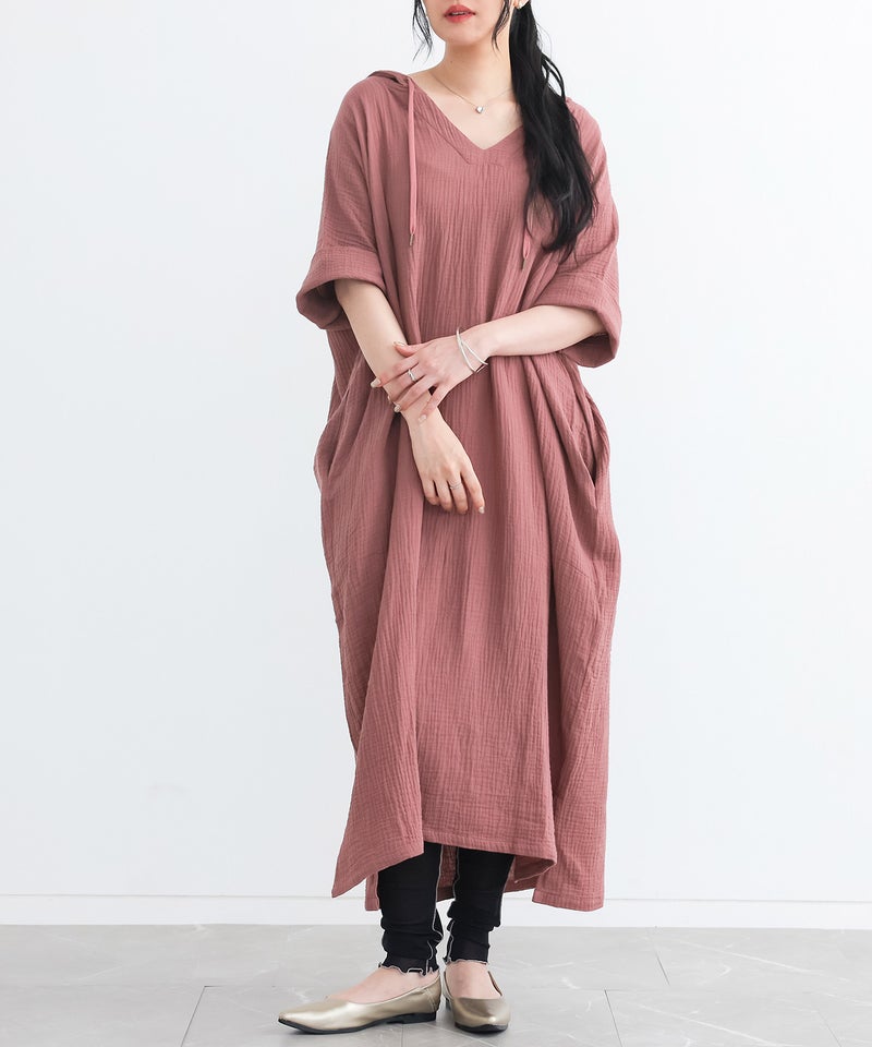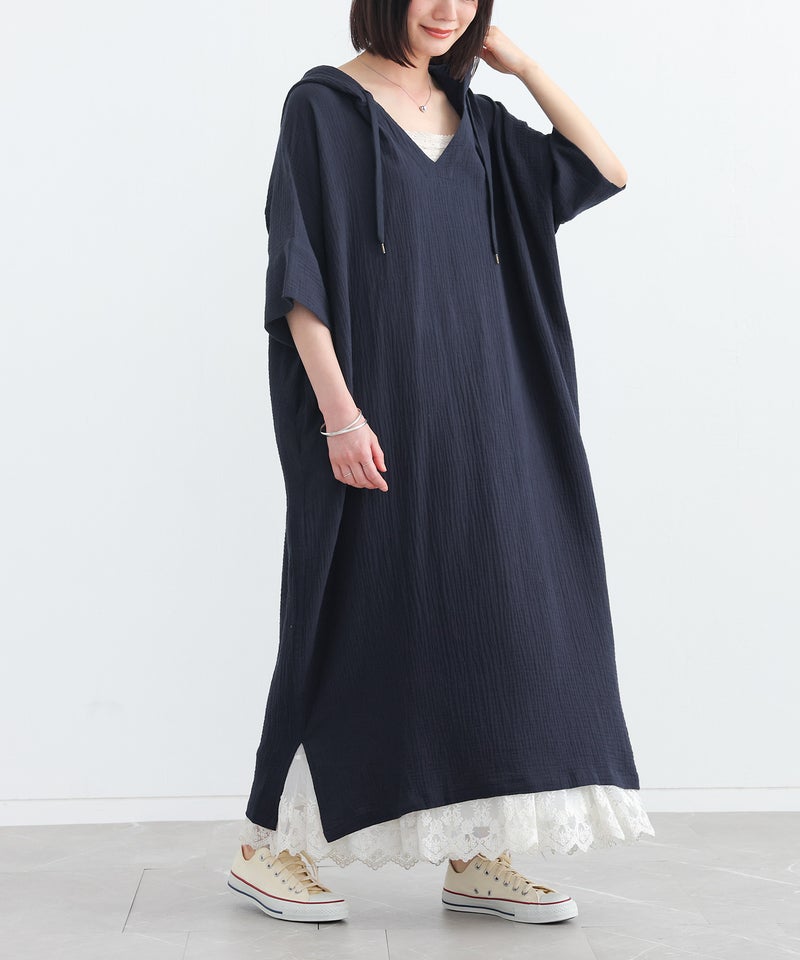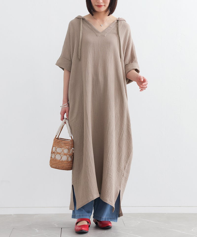 ラフに着てお洒落が絶対条件!≪n'OrLABEL≫ダブルガーゼフードワンピースです。
