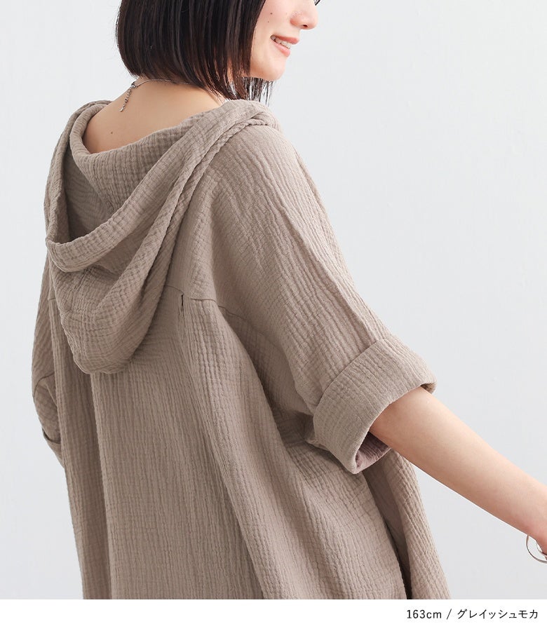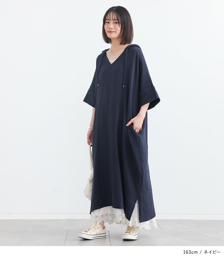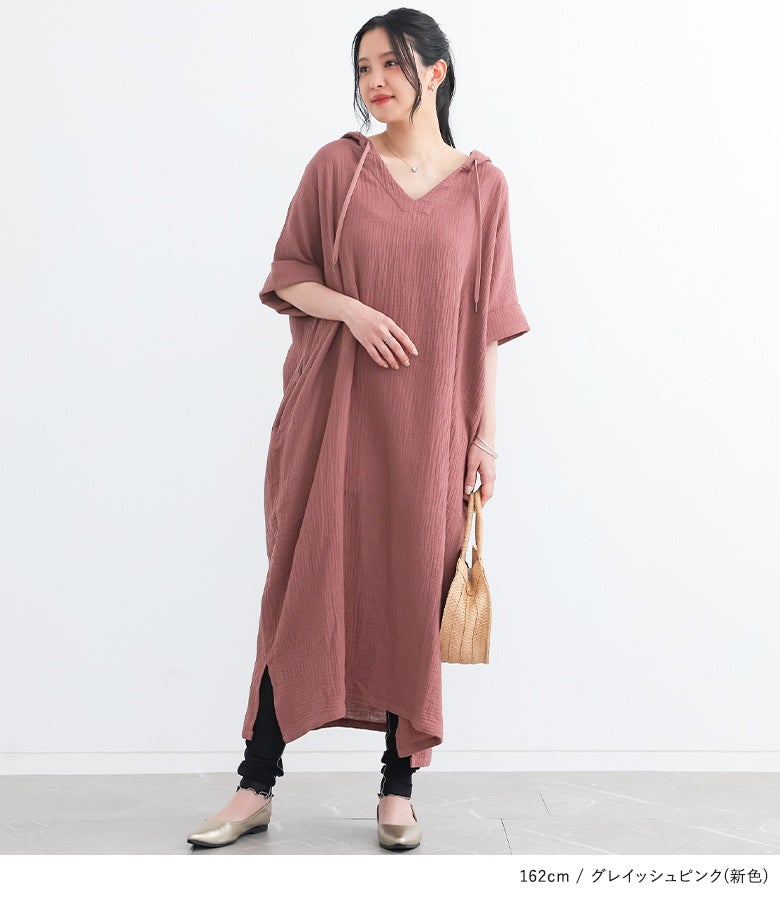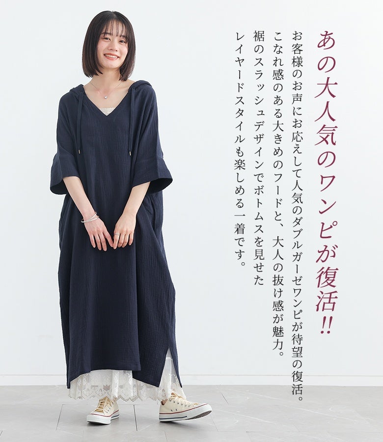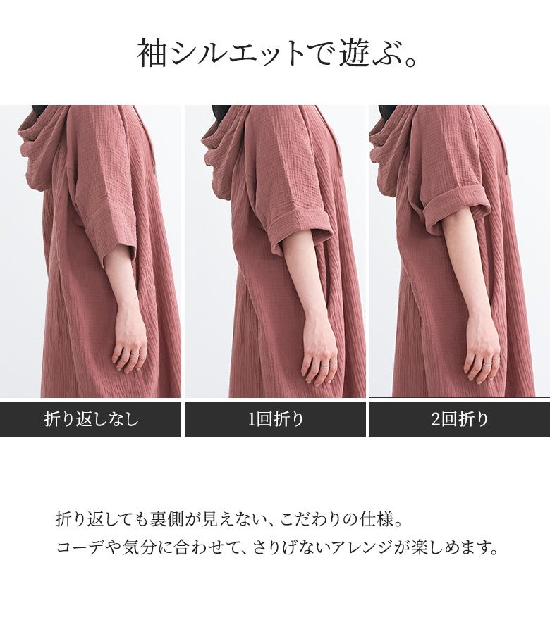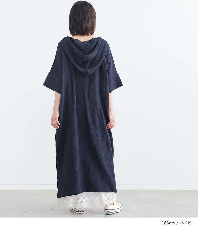 ラフに着てお洒落が絶対条件!≪n'OrLABEL≫ダブルガーゼフードワンピースです。
