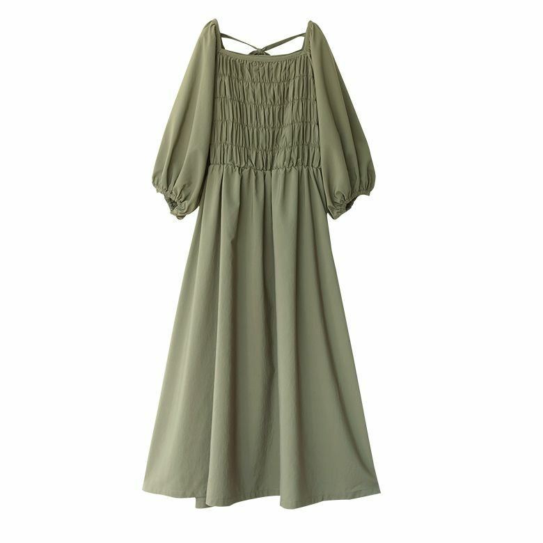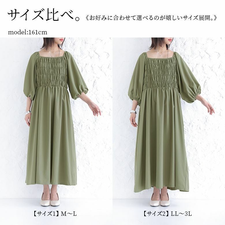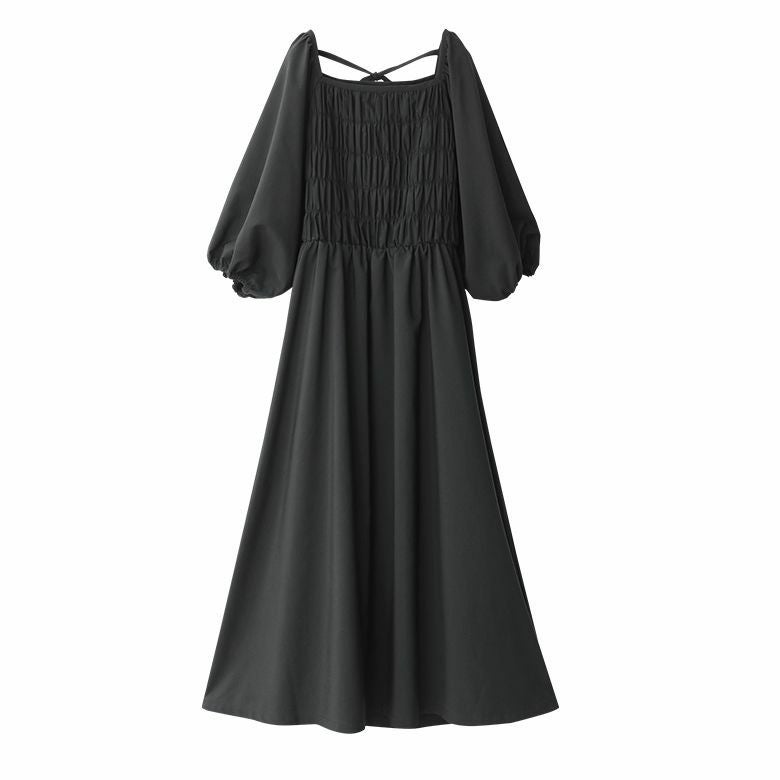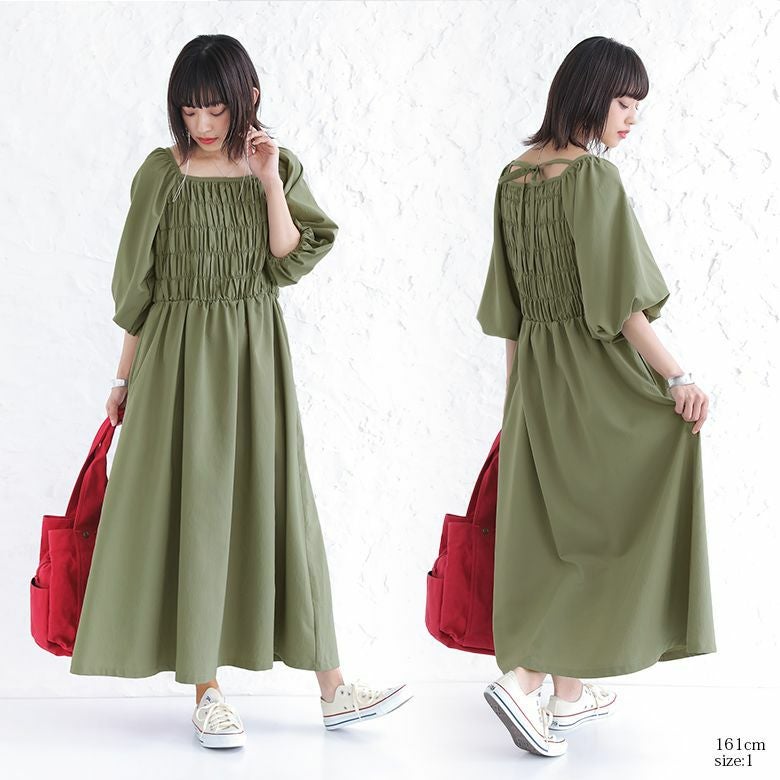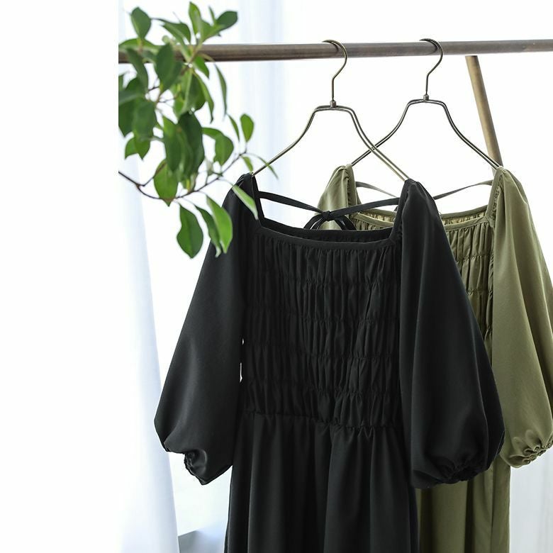 前後スクエアネックが顔周りをスッキリとした印象に。バックリボンが後ろ姿にアクセントをプラス♪