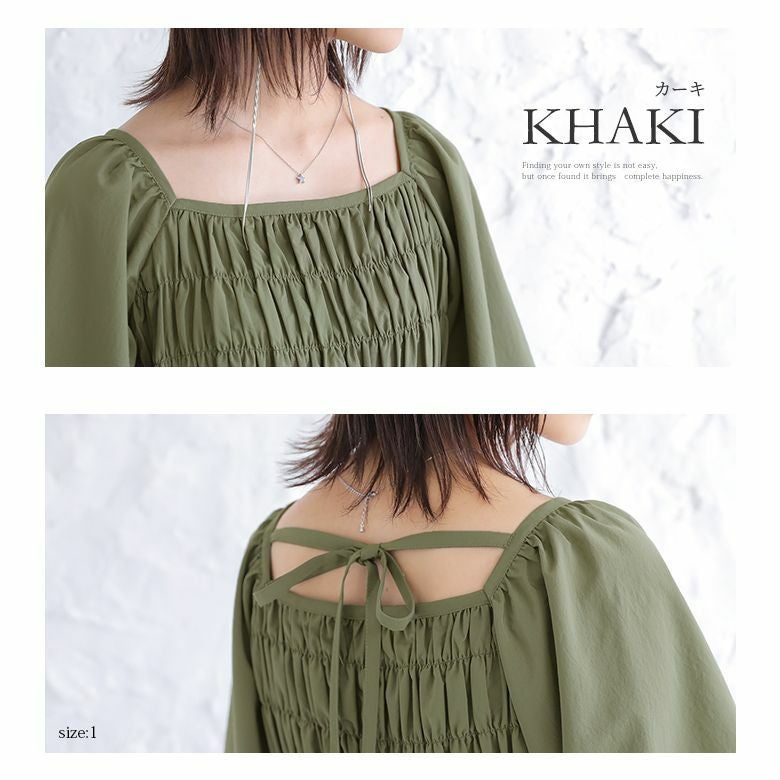 カーキを購入しました 後ろのリボンと袖がぽわんとなっているのがとても可愛いです(*^-^*)