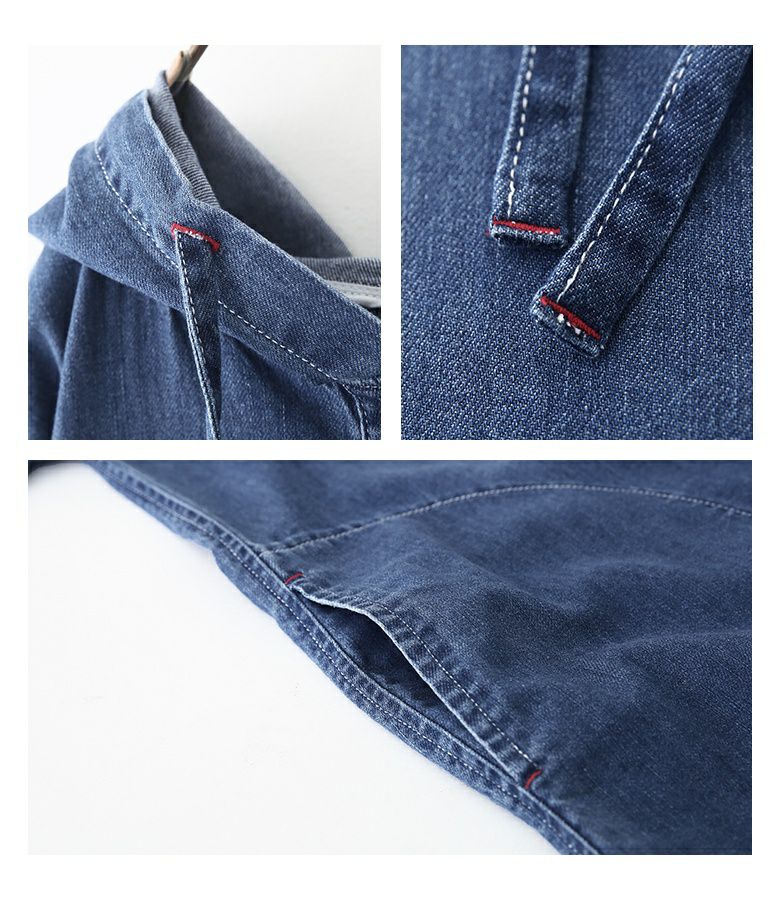 前後にブラスト加工を施したこなれ感高まるデニム生地。薄すぎず厚すぎない、程よい生地感でロングシーズン着用いただけます。