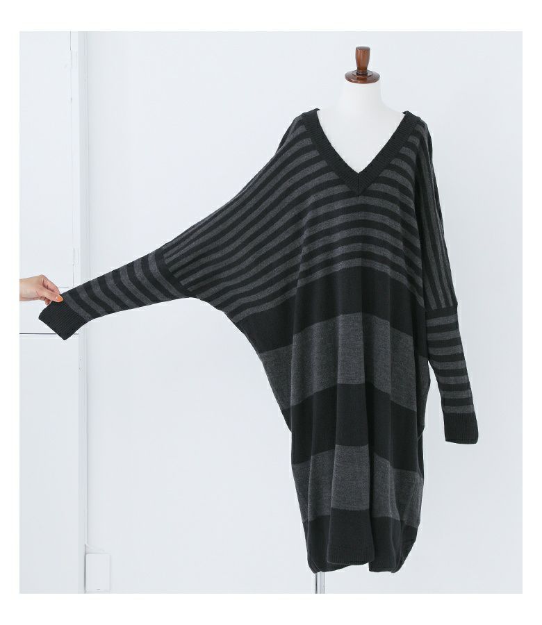 他の画像を見る デコルテを綺麗に見せるVネックと配色ボーダーで洗練された雰囲気になるニットワンピース。 『n'OrLABELカシミヤタッチボーダーニットワンピース』【メール便不可】【20】 ¥ 4,980 税込 4.75 (4)
