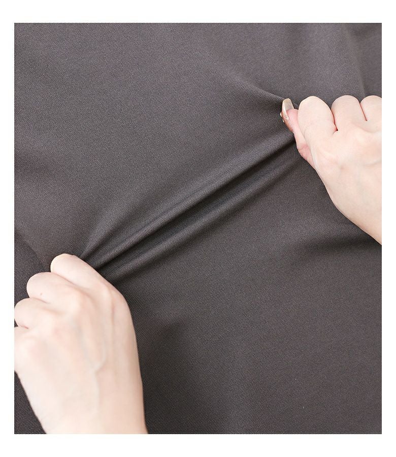 伸縮性のあるポンチ生地を使用。柔らかな肌触りで長時間着用しても楽ちんの着心地です。つるっとした表面感できれい見えする一枚です。