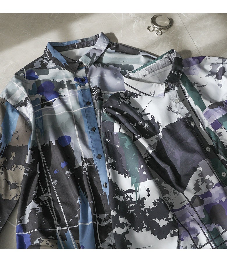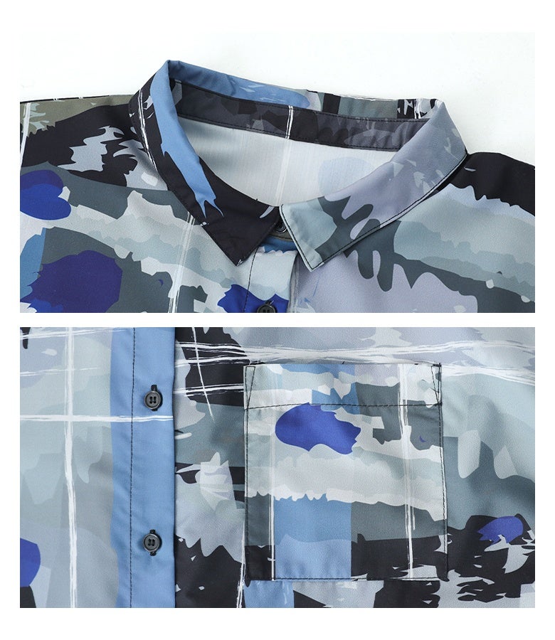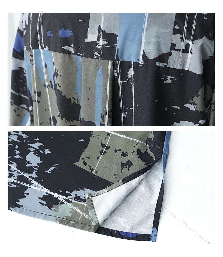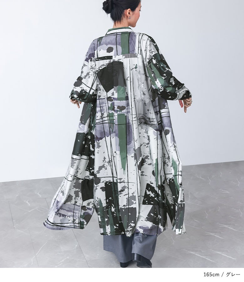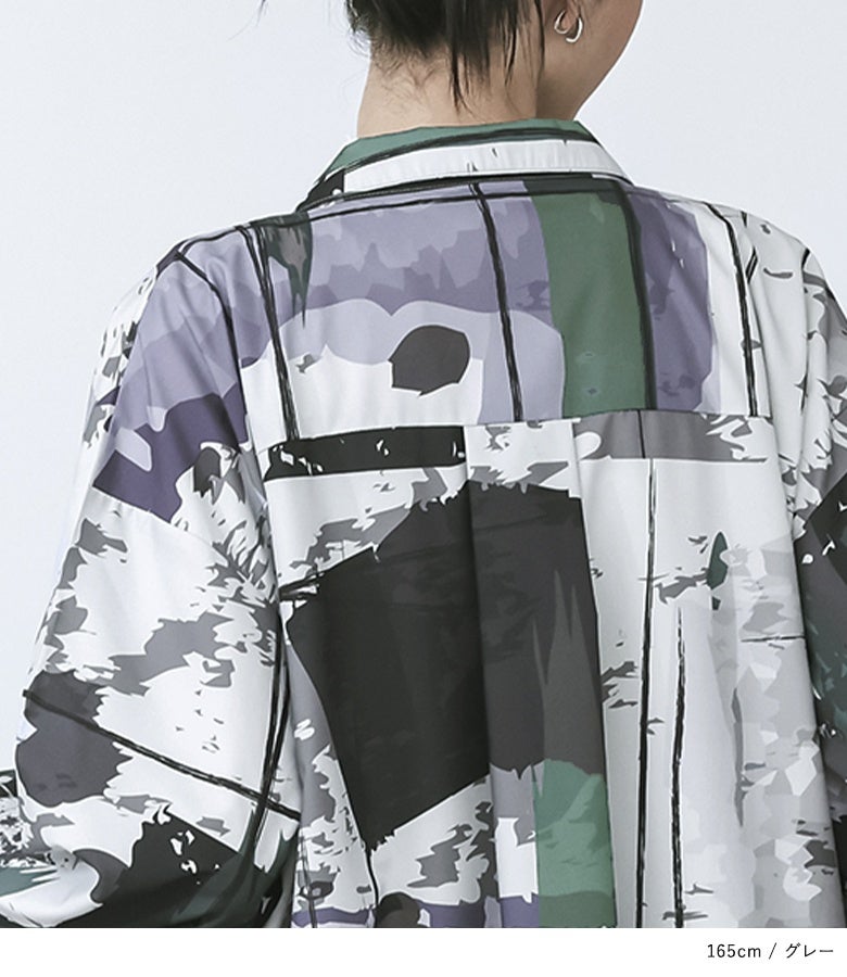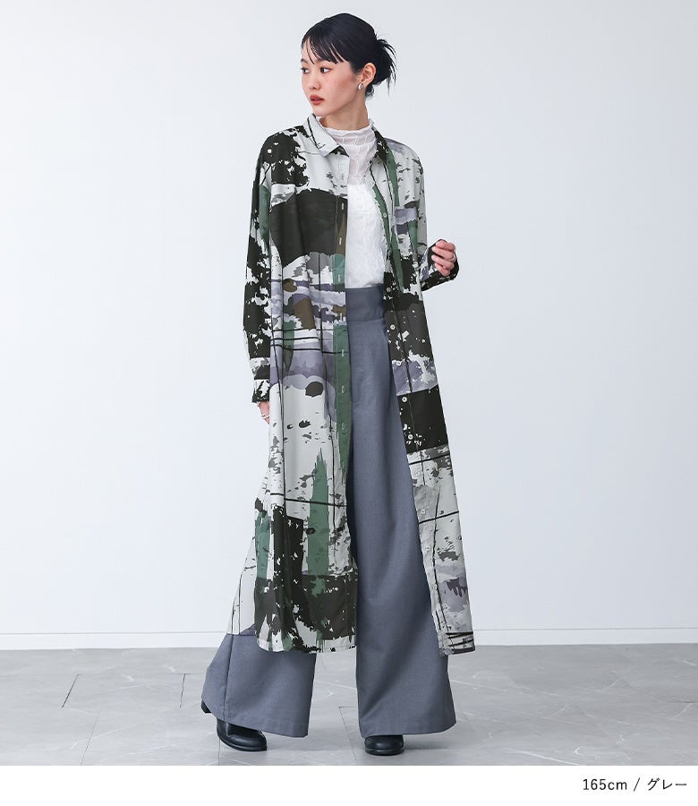 オリジナルアート柄を大胆に全面プリントしたシャツワンピース。
