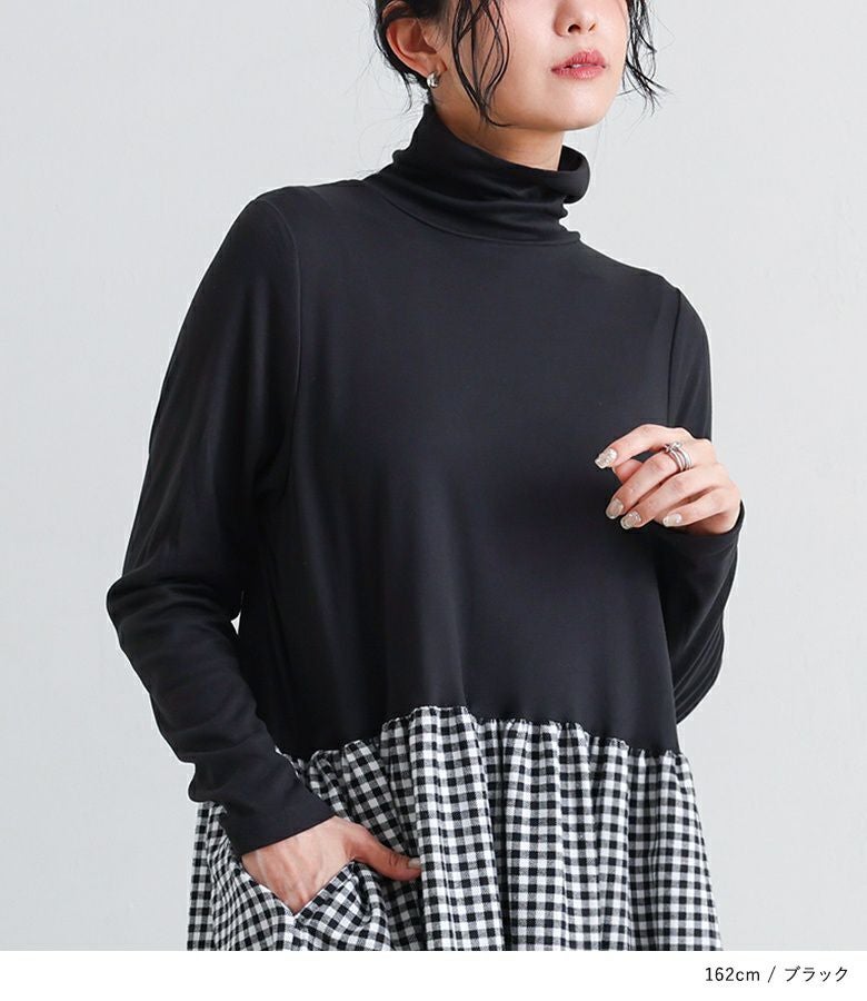 きちんと感のあるタートルネックドッキングワンピース。