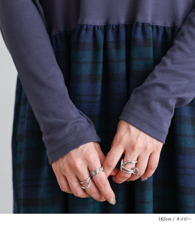 1枚でコーディネートが完成する、デイリーに着やすいドッキングワンピース。羽織りやシューズを変えるだけで印象がガラリと変わり、さまざまなスタイリングを楽しめる一着です。