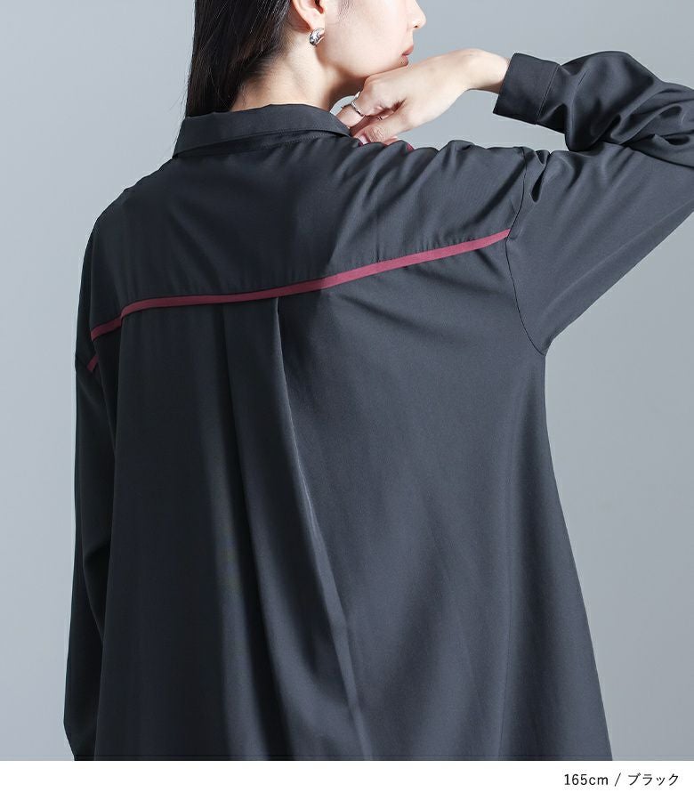 さらりとした肌触りでほんのり落ち感のあるポリエステル100%素材の生地を使用。季節の変わり目に最適なアイテムです。