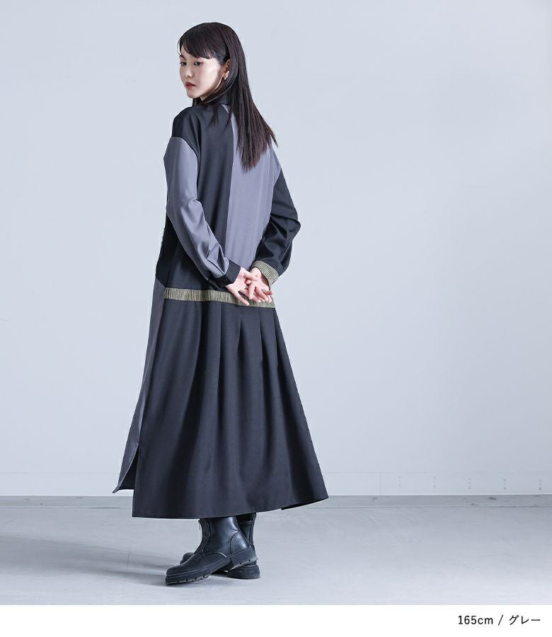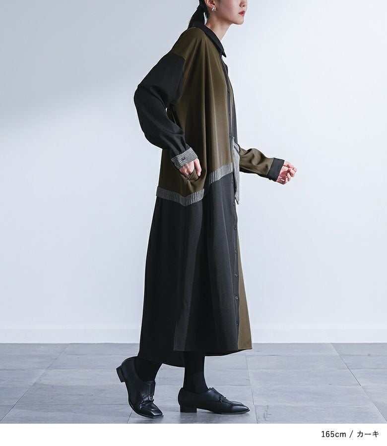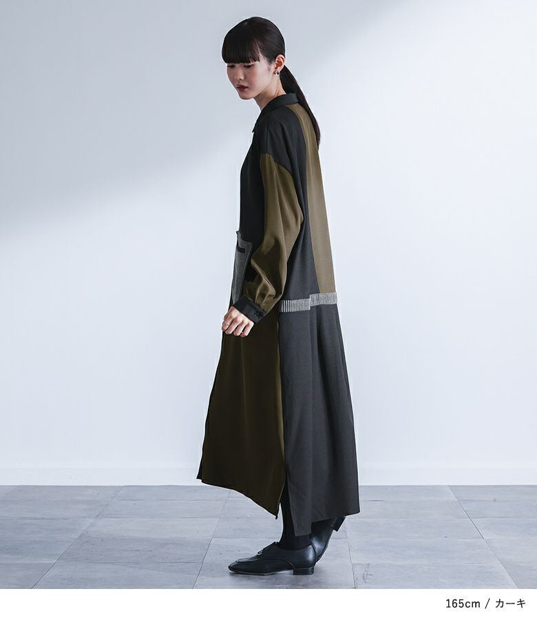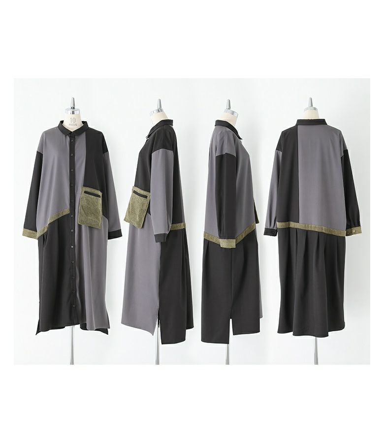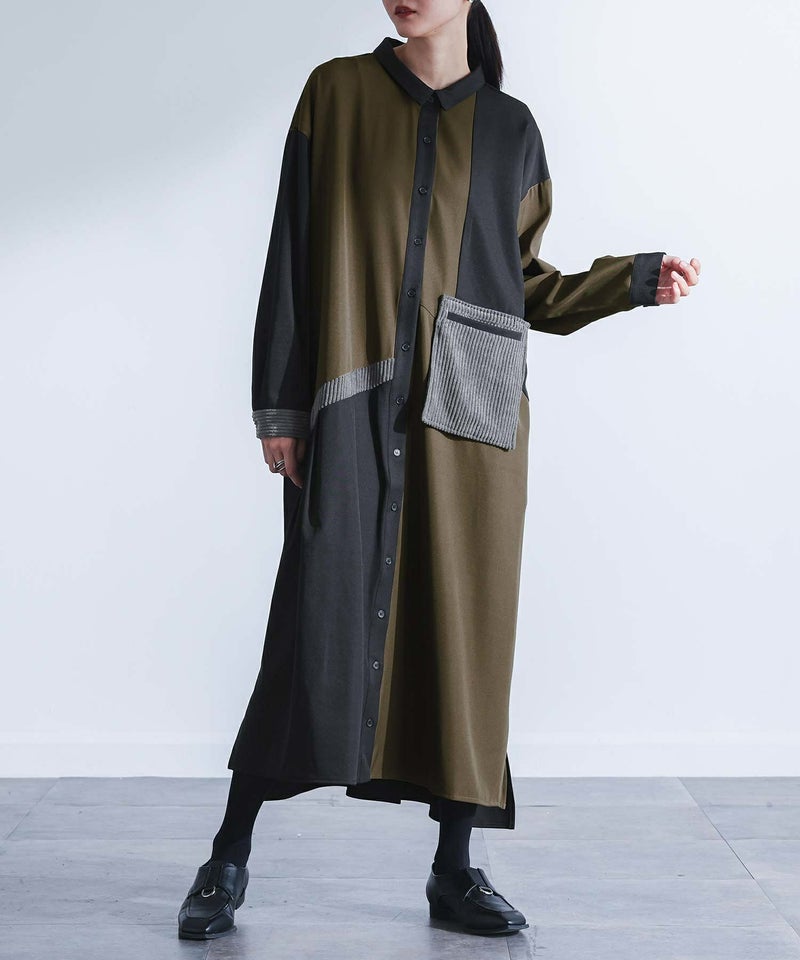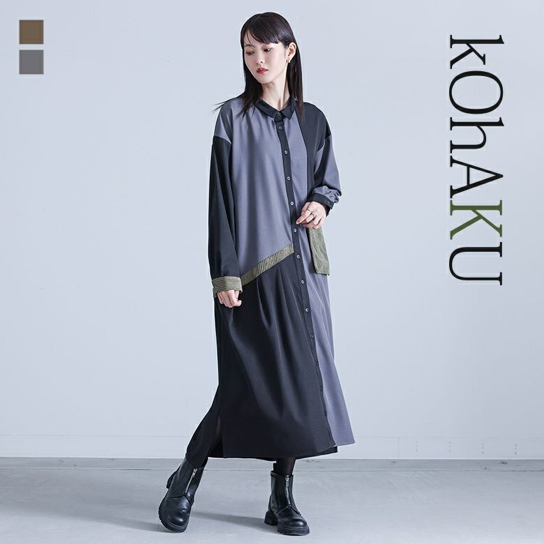 『kOhAKU異素材配色切替シャツワンピース』