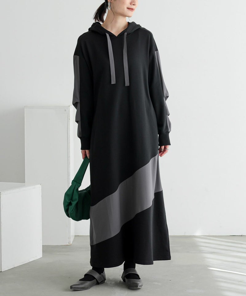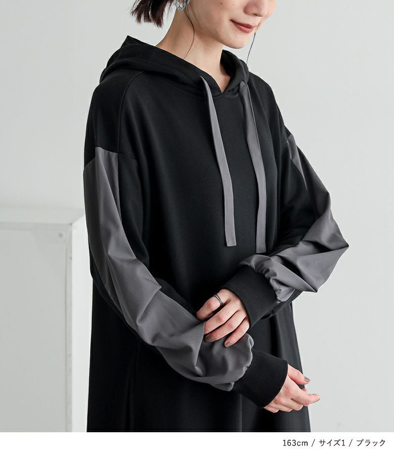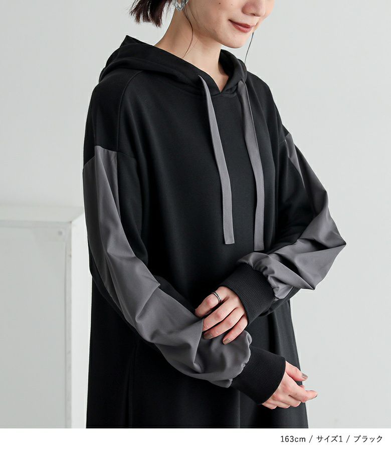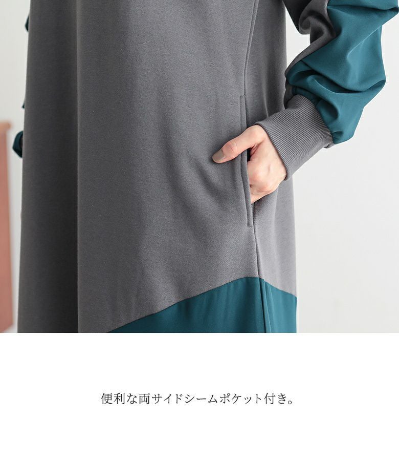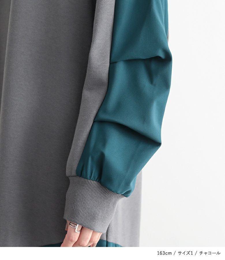 ゆったりシルエットで着心地楽ちん。異素材切り替えで、ラフすぎない大人カジュアルが完成するワンピです。