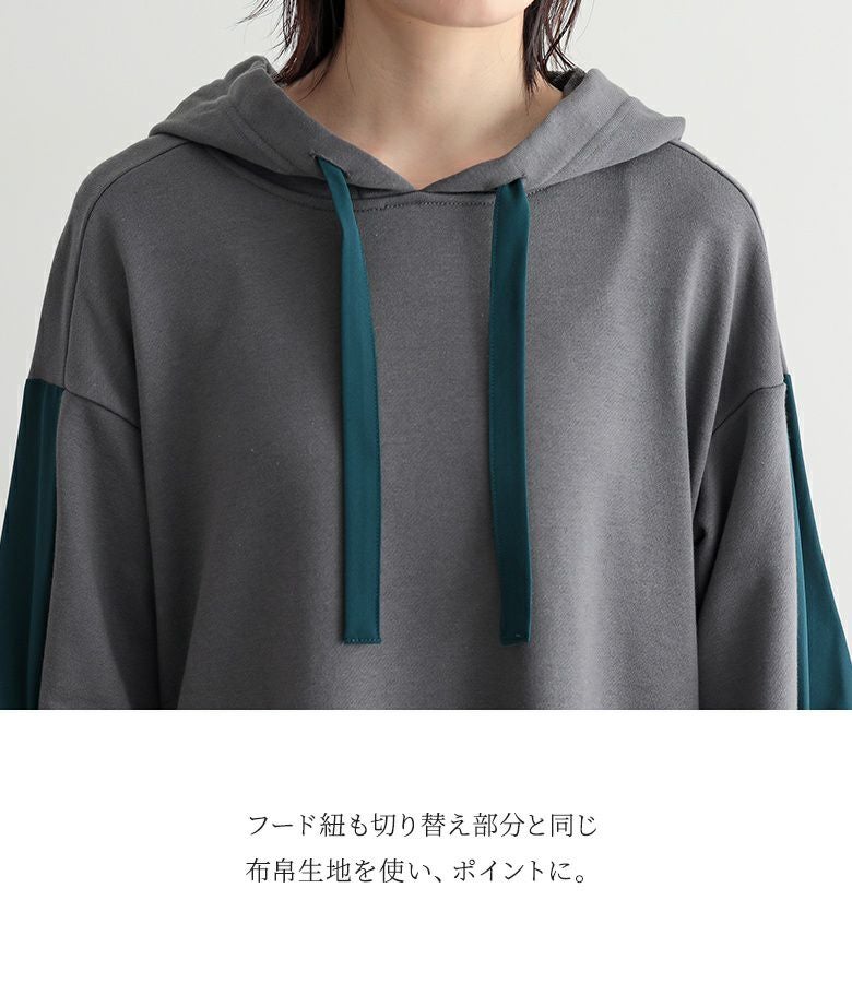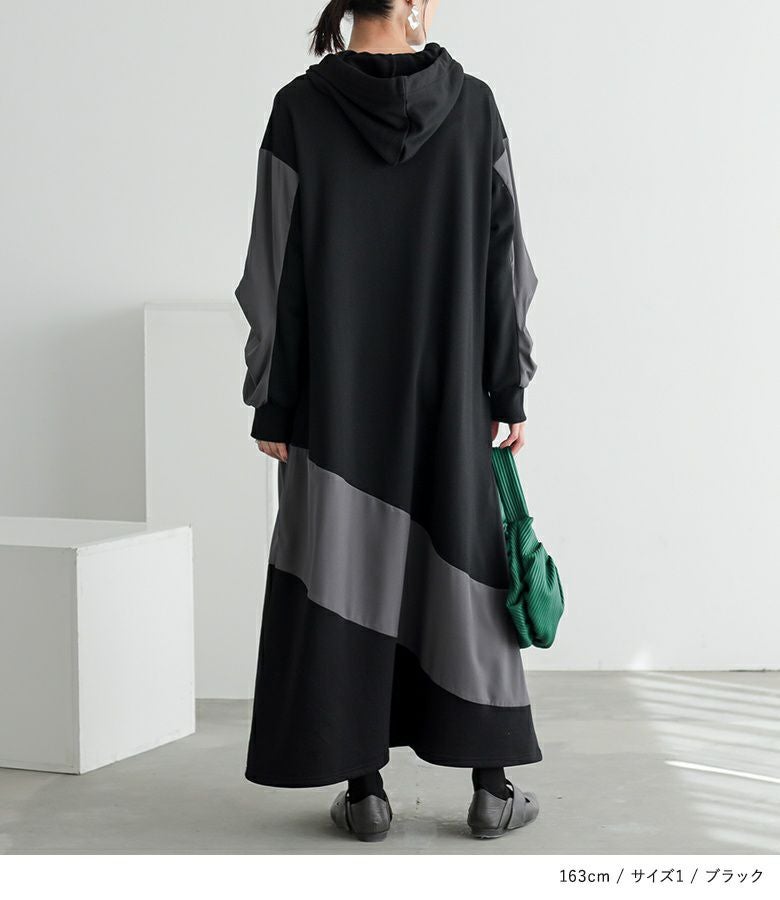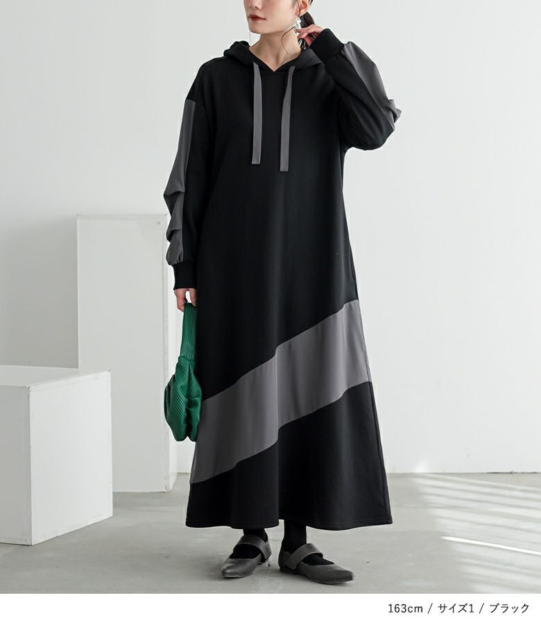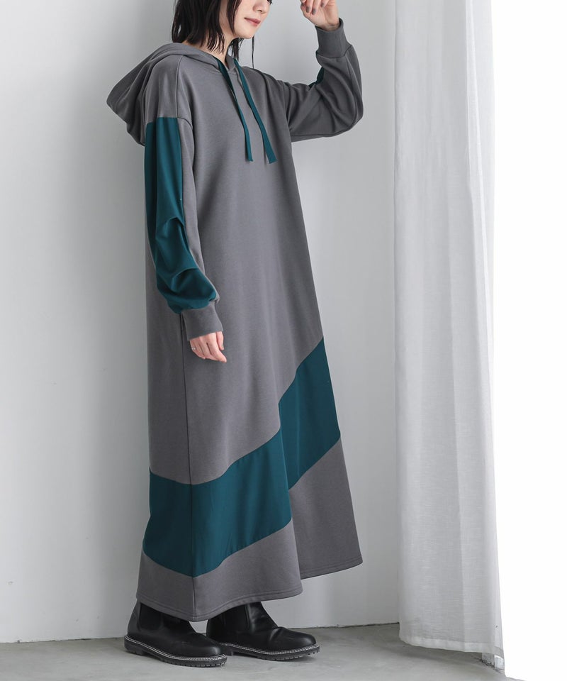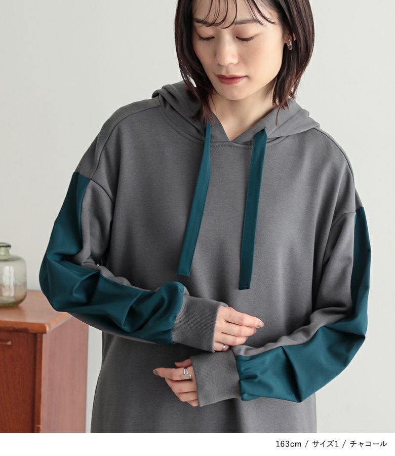 ゆったりシルエットで着心地楽ちん。異素材切り替えで、ラフすぎない大人カジュアルが完成するワンピです。