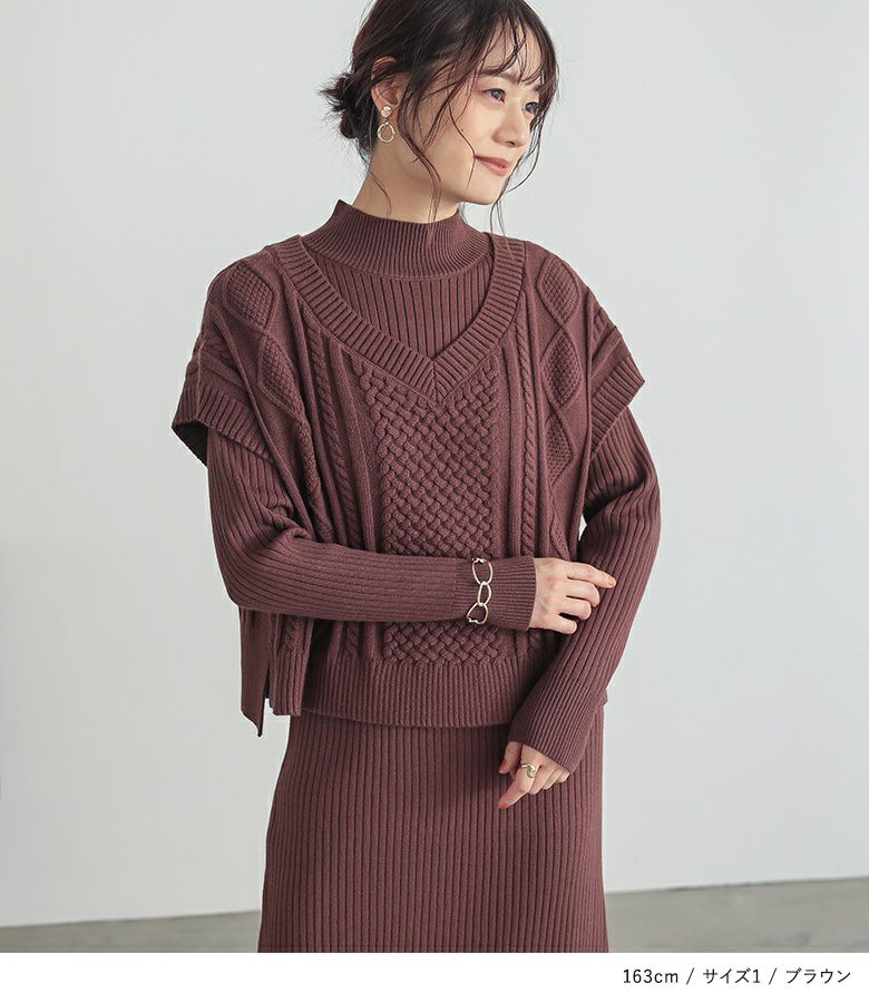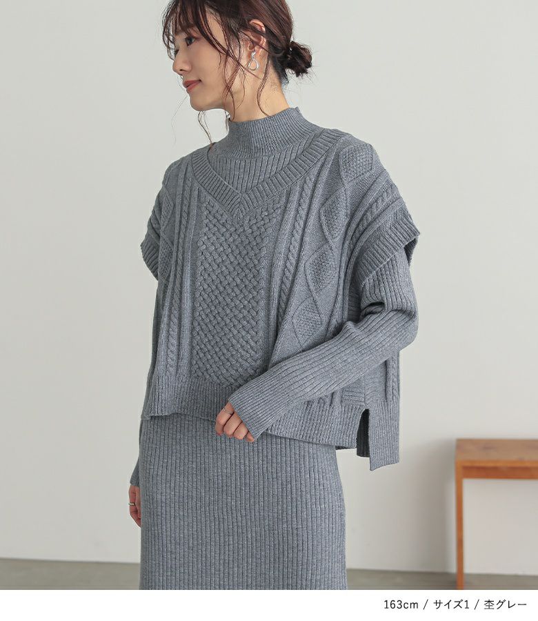【普段着用】 Tops: M Bottoms: M/L | 【1】 ◆ベスト 袖丈:二の腕真ん中位 着丈:ヒップにかかる位