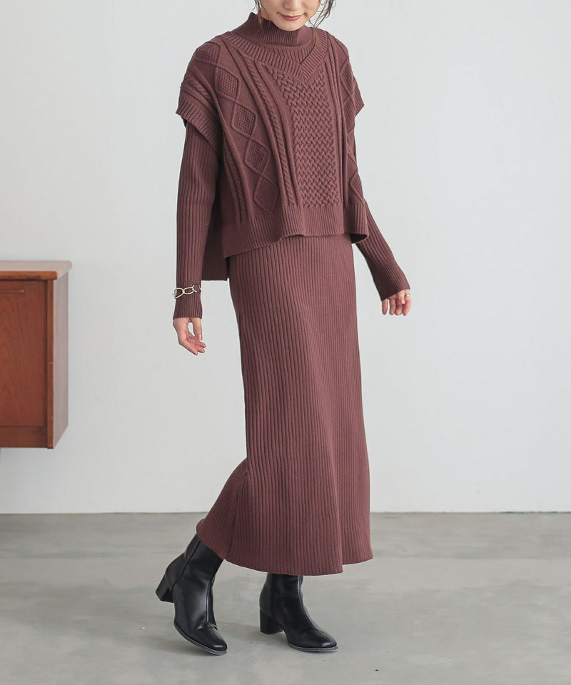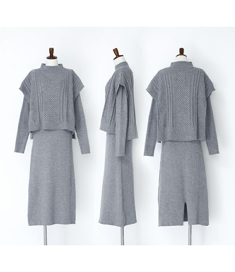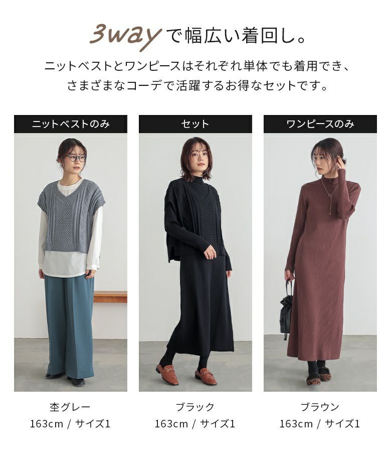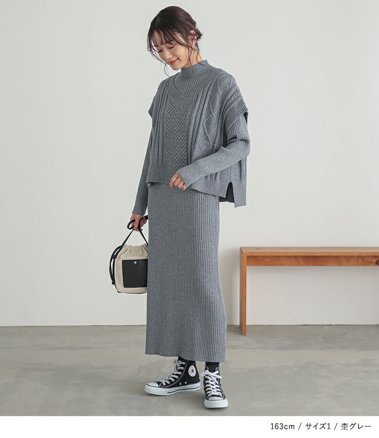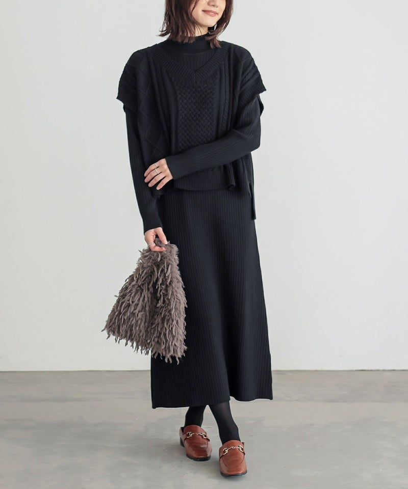 体のラインが気になりがちなニットワンピースがベストがあるおかげで気にならず着られました。