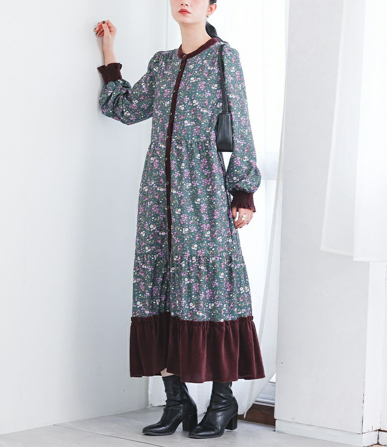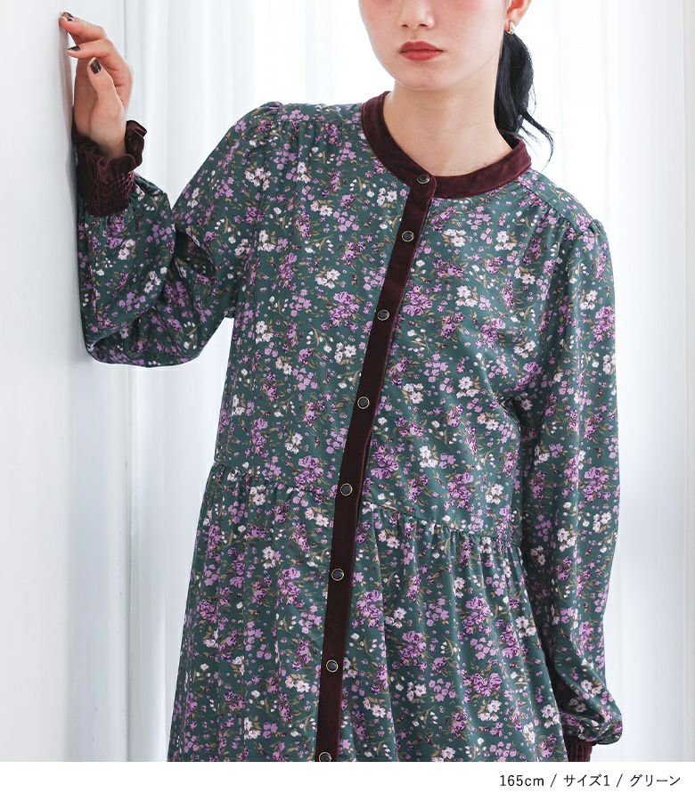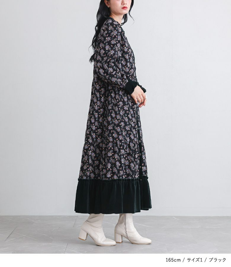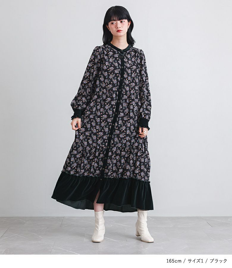 【普段着用】 Tops: LL Bottoms:LL | 【1】 袖丈:手首位 着丈:くるぶし上5cm位 腕周り:ジャスト バスト:ジャスト ウエスト:ややゆったり ヒップ:ややゆったり 全体:スッキリ