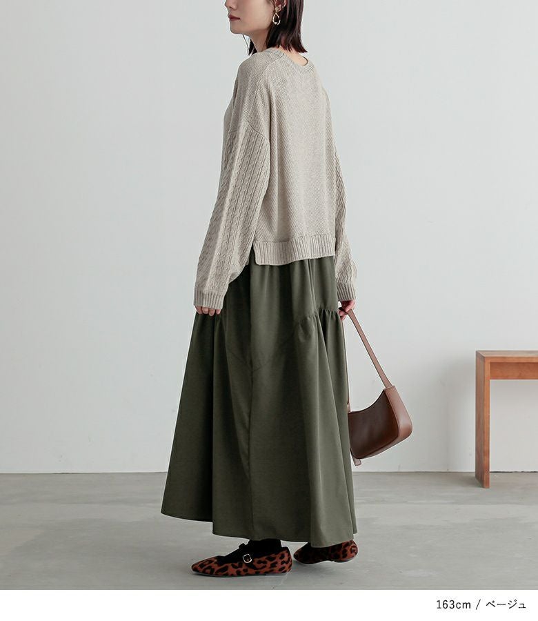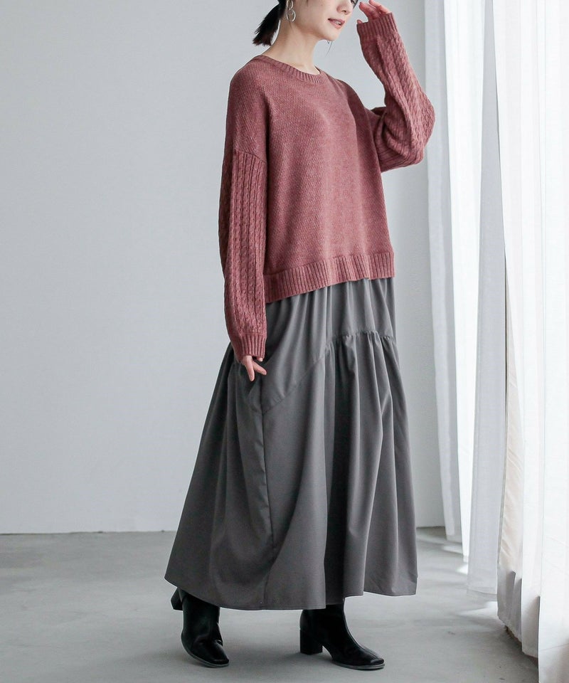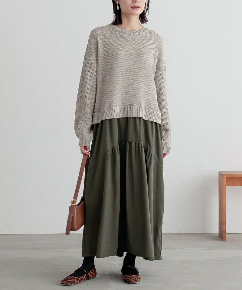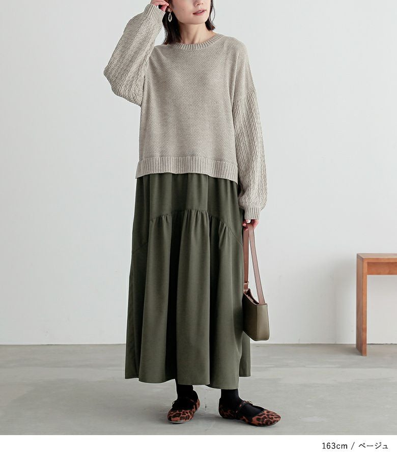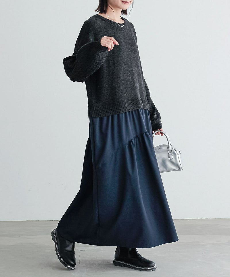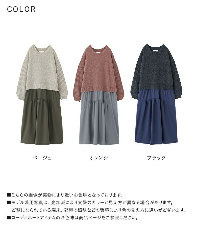 ニットトップス×スカートをドッキングした、一枚でコーデが完成するワンピース。