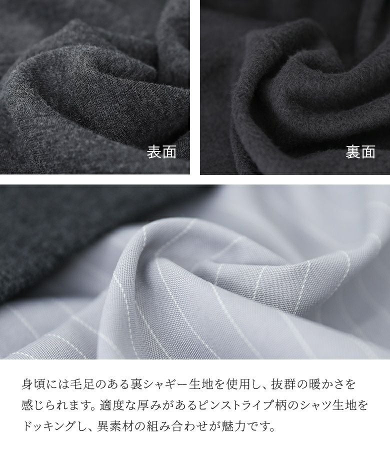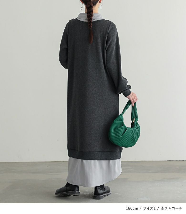 ゆったりとしたシルエットなので、体型を気にせず楽に着用できます。裏起毛素材であたたかく、肌に触れてもちくちくしない素材感です。