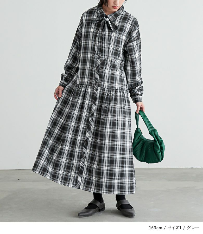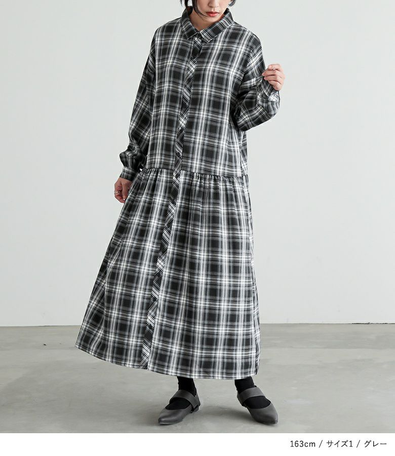 【普段着用】 Tops: M Bottoms: M/L | 【1】 袖丈:手の甲にかかる位 着丈:ふくらはぎが隠れる位 腕周り:ややゆったり バスト:ややゆったり ウエスト:ゆったり ヒップ:ゆったり 全体:スッキリ