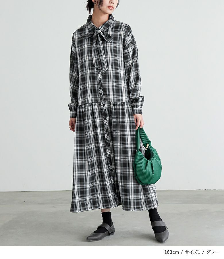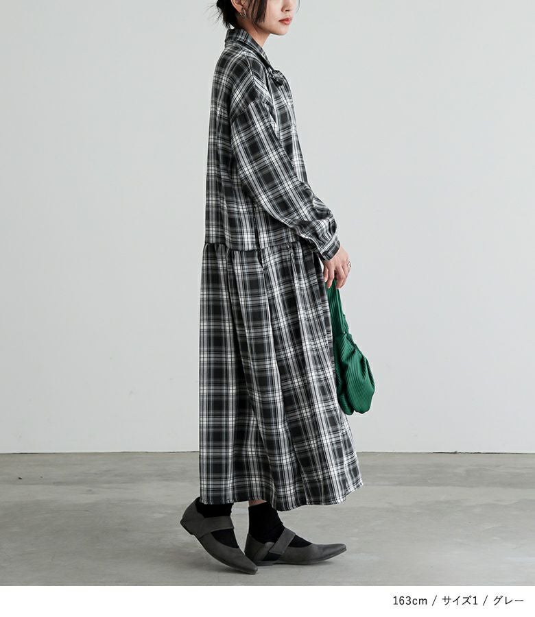 【普段着用】 Tops: L/LL Bottoms:LL | 【1】 袖丈:手首位 着丈:ふくらはぎが隠れる位 腕周り:ジャスト バスト:ジャスト ウエスト:ジャスト ヒップ:ややゆったり 全体:スッキリ