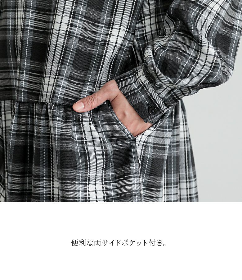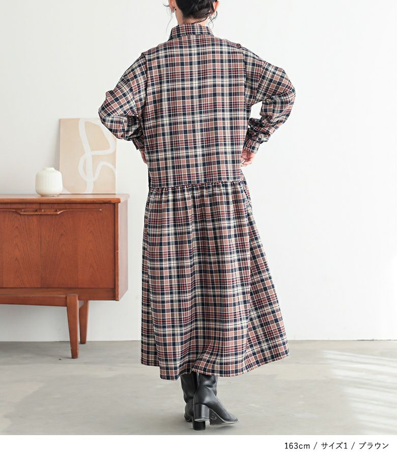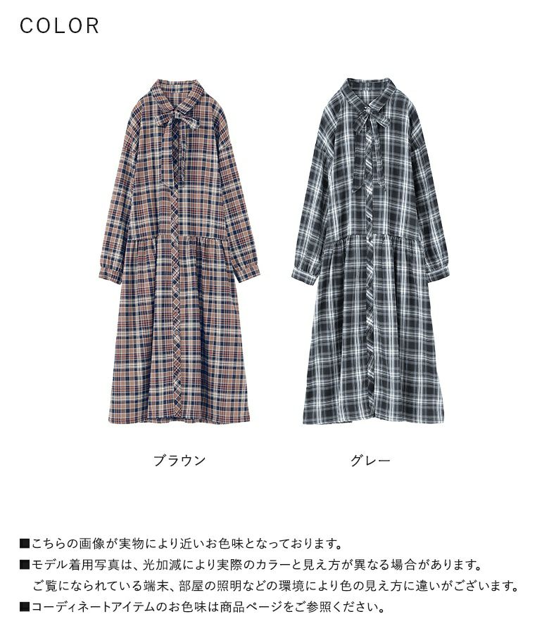 選べる2サイズ展開!ボウタイ付きのチェック柄シャツワンピース。