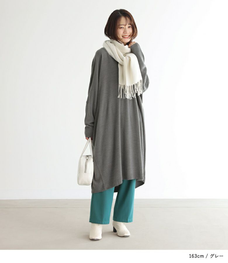 ハーフブーツやロングブーツと合わせて一枚で着用するほか、パンツやスカート、ワンピースなどとレイヤードしてもご着用いただけます。シンプルなデザインで着回しやすく、ストールなど小物でアレンジも楽しめるアイテムです。