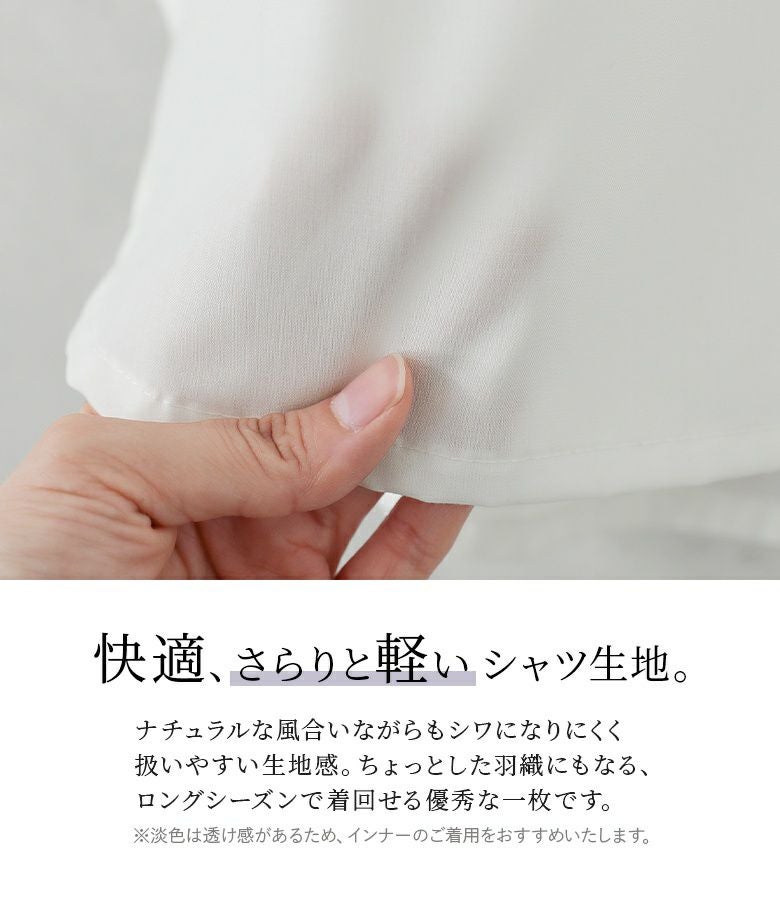 さらっと軽いシャツ生地は、シワになりにくく扱いやすいからロングシーズン大活躍。選べるM~3Lサイズ展開だから、お好みの丈感でお洒落をお楽しみいただけます。