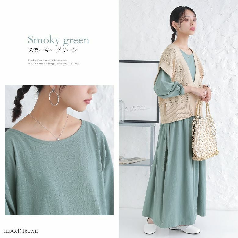 風合い抜群のコットン生地をたっぷり使ったロングワンピース。