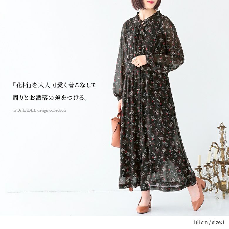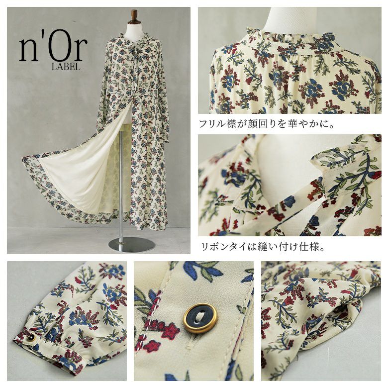 ときめく花柄を軽やかに纏う≪n'OrLABEL≫リボンタイフラワーロングワンピです。