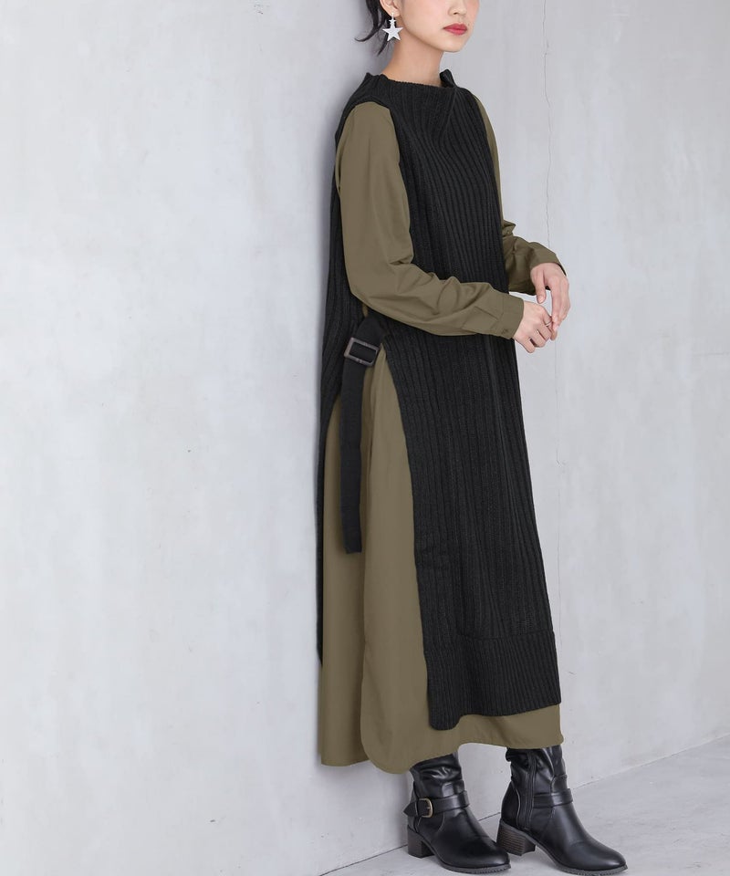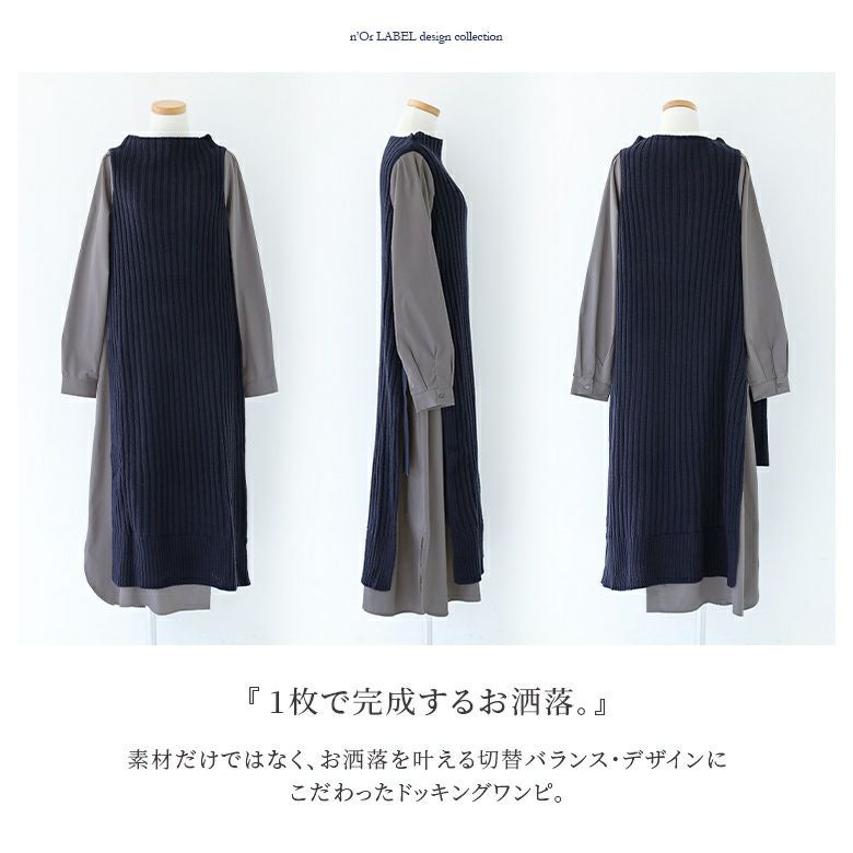ラクにお洒落見せ≪n'OrLABEL≫シャツドッキングニットワンピースです。