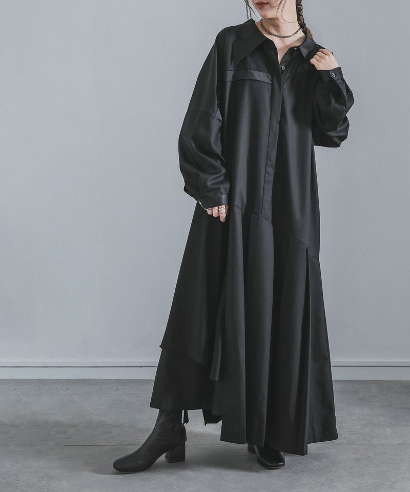 洗練された個性を創り上げる≪kOhAKU≫変形襟アシメプリーツワンピースです。