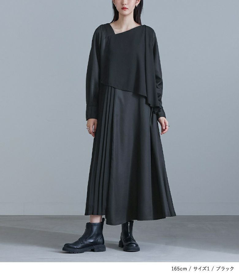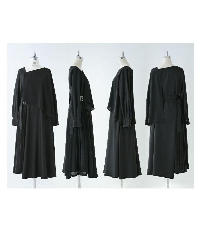 個性を惹き立てるアシメラインが魅力≪kOhAKU≫アシメデザインフレアワンピースです。