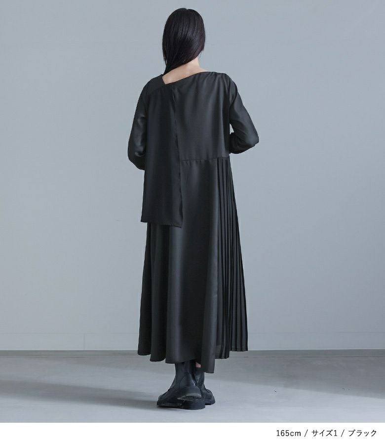 選べるM~3Lサイズ展開!後ろ姿まで完璧。アシメデザインフレアワンピース