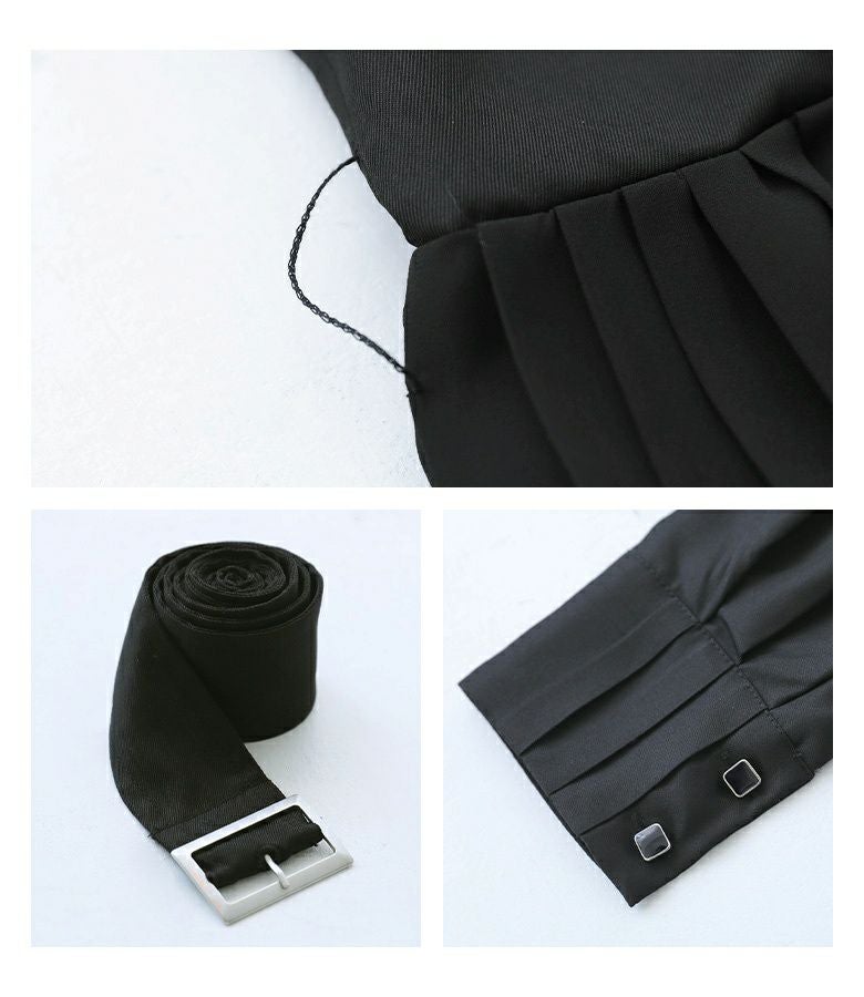 後ろのデザインもキレイなアシメラインだから後ろ姿まで完璧。ワンポイントとなるベルトを絞れば、ウエストをすっきり魅せられます。