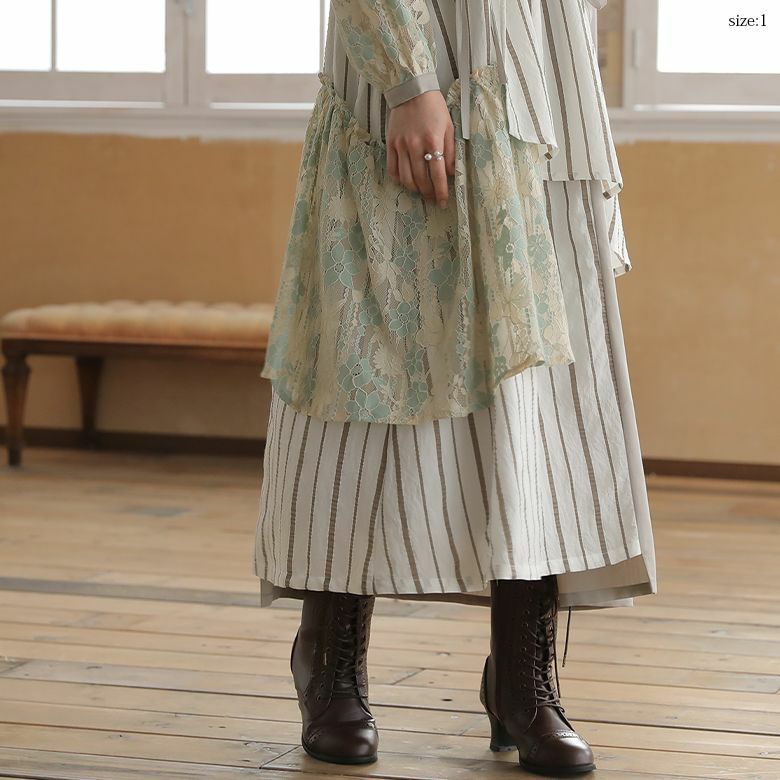 柔らかな布帛生地に、シャリ感のあるストライプ生地と繊細な花柄レースをドッキングさせた、特別感溢れるデザイン性。