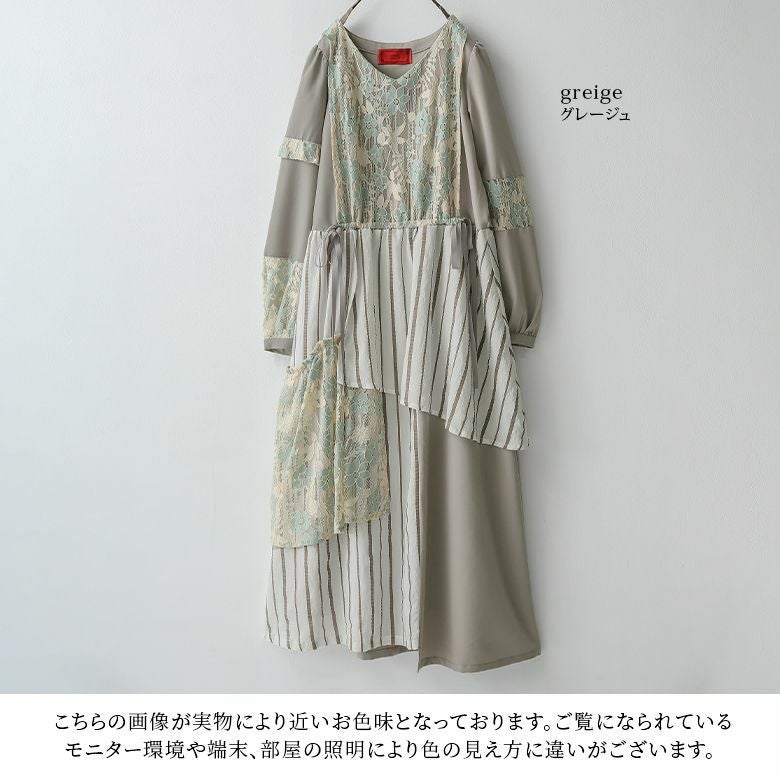 お洒落を纏うレース×ストライプ切替ワンピース♪