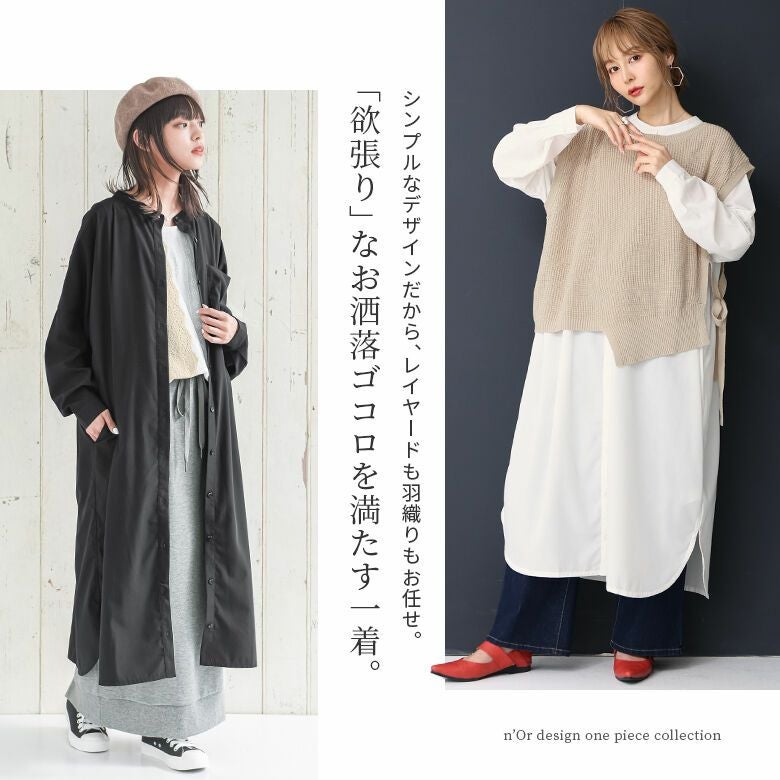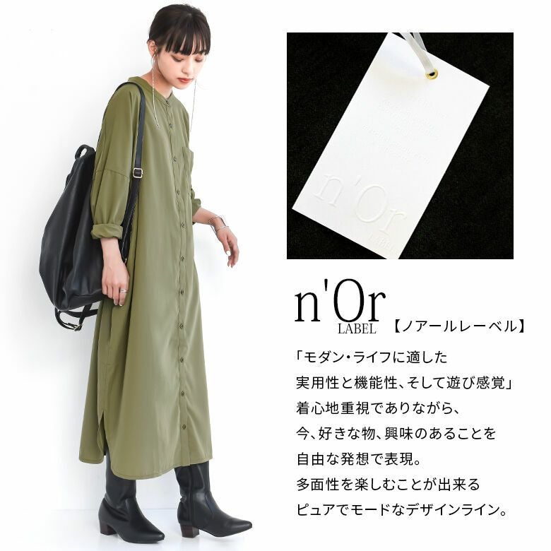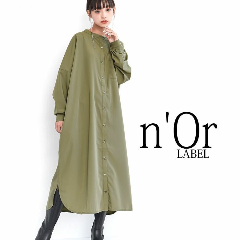 シンプルに着るだけでお洒落が完成≪n'OrLABEL≫バンドカラーシャツワンピースです。