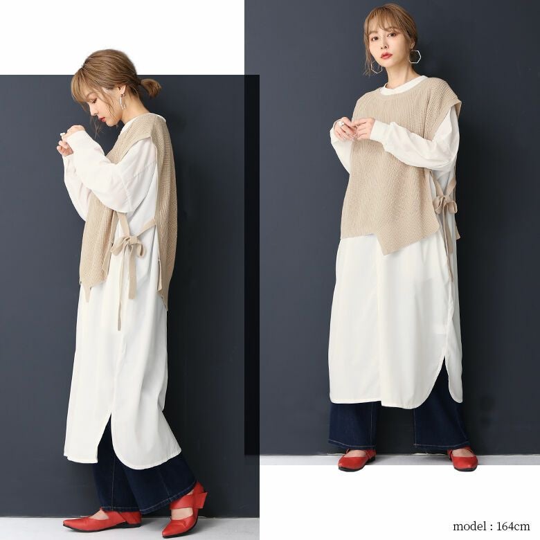 一枚でお洒落な着こなしも、羽織りとして着るのも、そしてレイヤードもお任せできる、優秀ロングシャツワンピース。