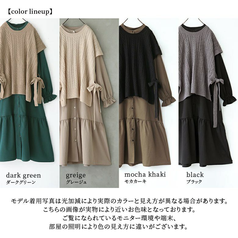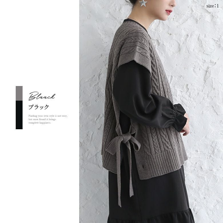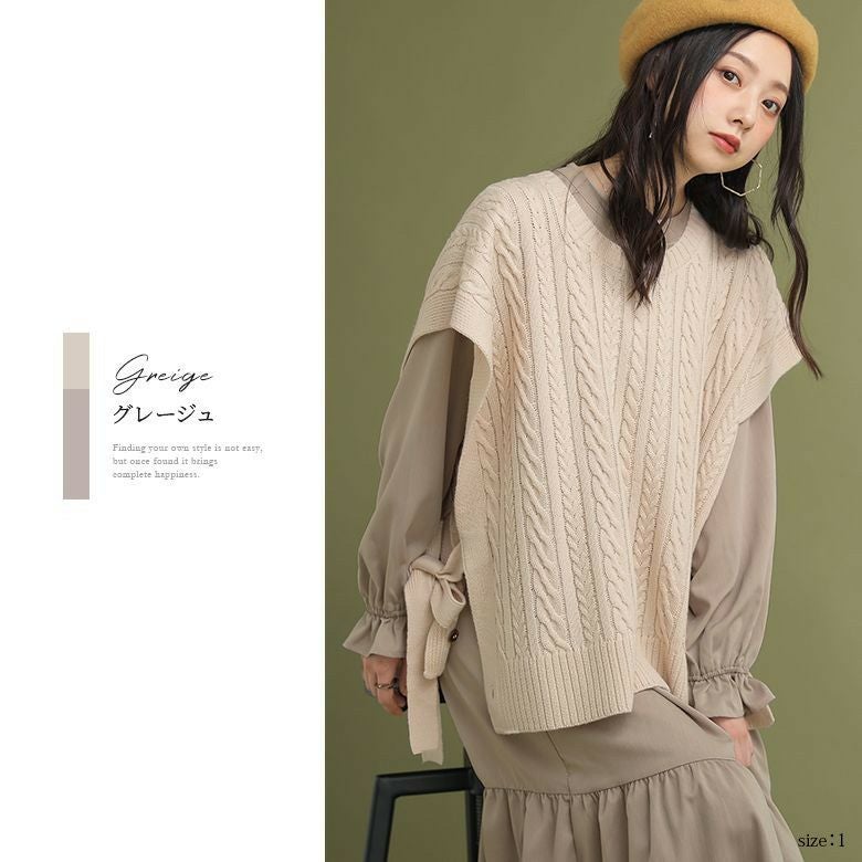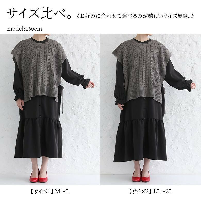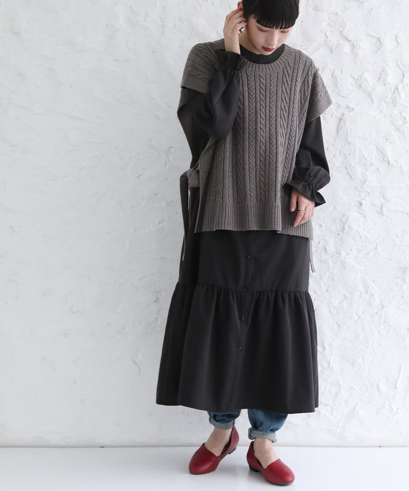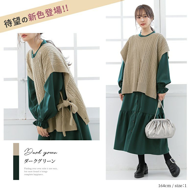 ベストは程よい厚みの柔らかなケーブルニット。ワンピースは透けにくく、ストレッチの効いた軽やかな生地感。デザインだけでなく着心地まで叶えてくれます。