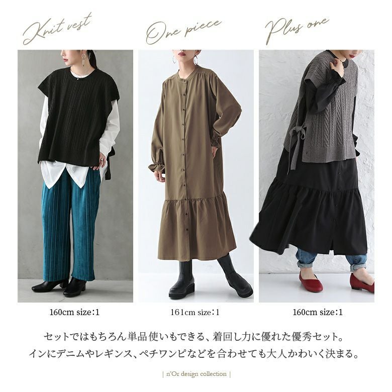 何通りものコーデが楽しめるニットベストとシャツワンピースの2点セット♪