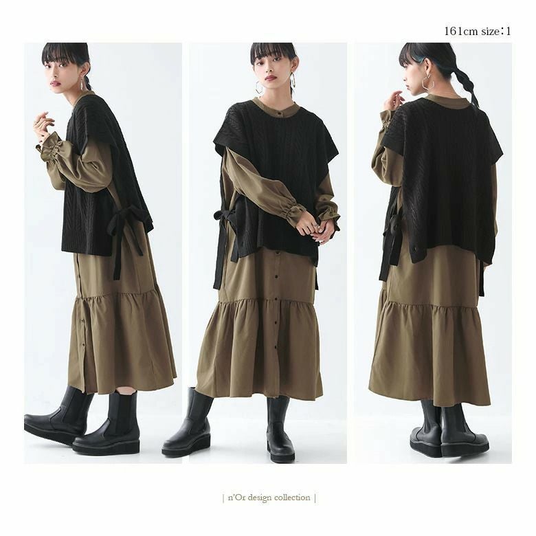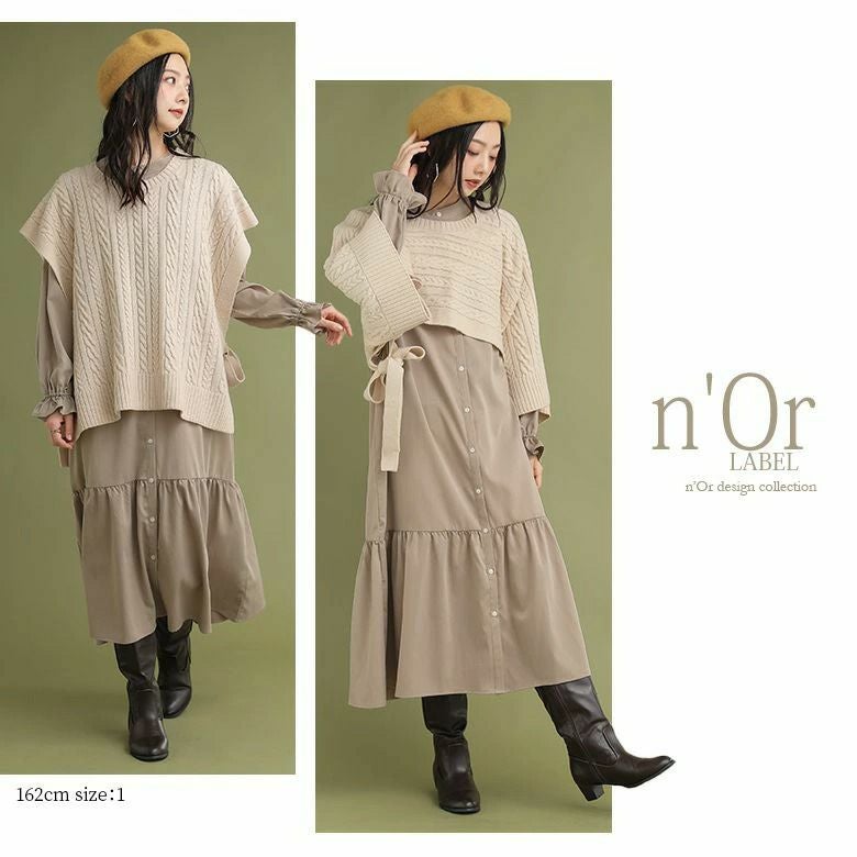 着回し無限大≪n'OrLABEL≫ニットベスト×シャツワンピースセットです。