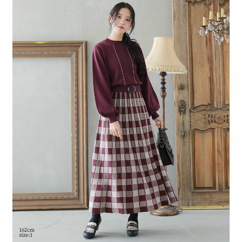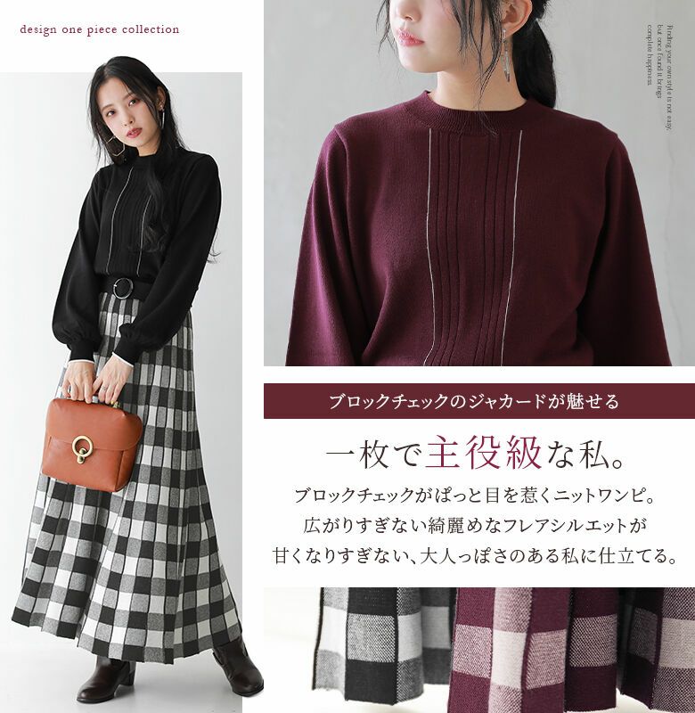 目を惹くブロックチェックが一枚で主役級のお洒落を完成させるニットワンピース♪
