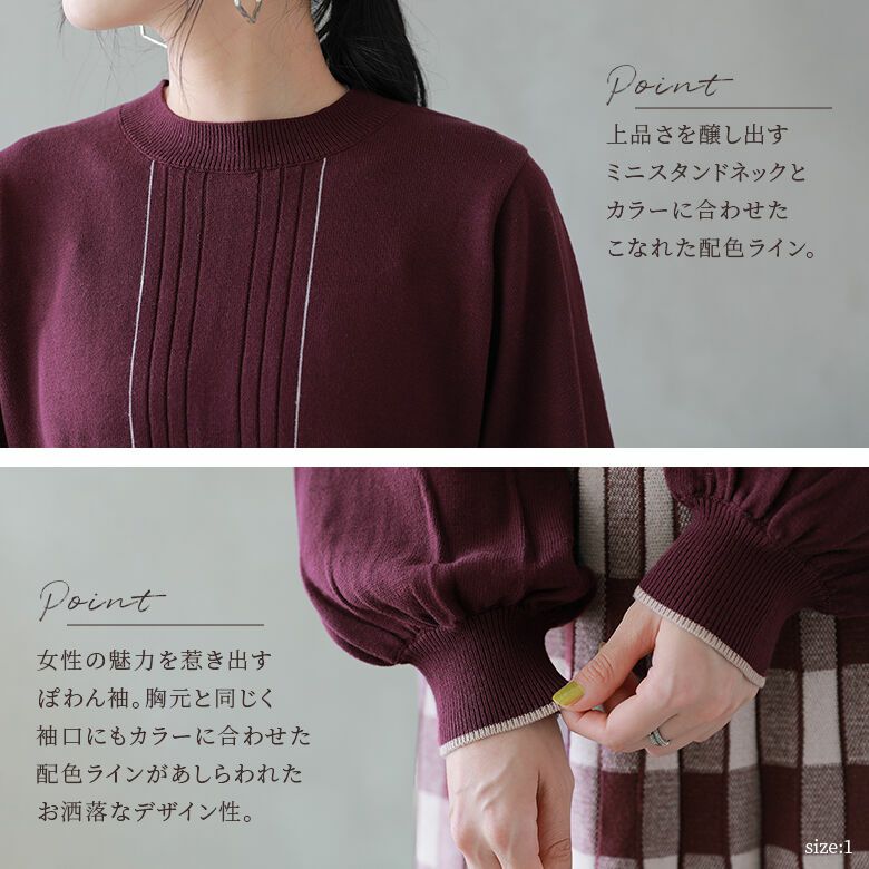 プチハイネックと広がりすぎないフィット&フレアシルエットが上品な、大人っぽく着こなせる一着です。選べるM~3Lサイズ展開も魅力的!