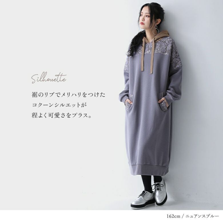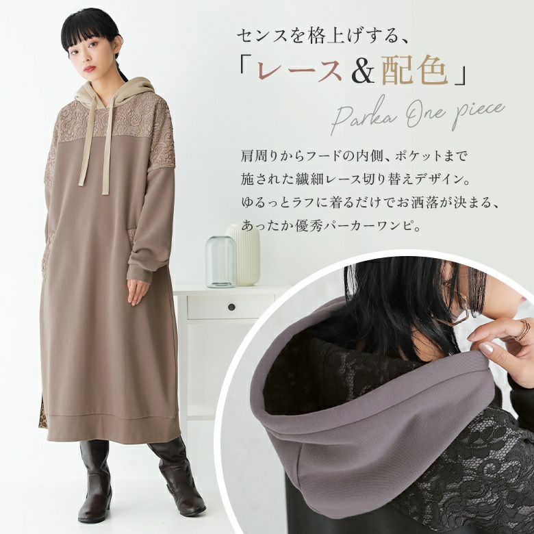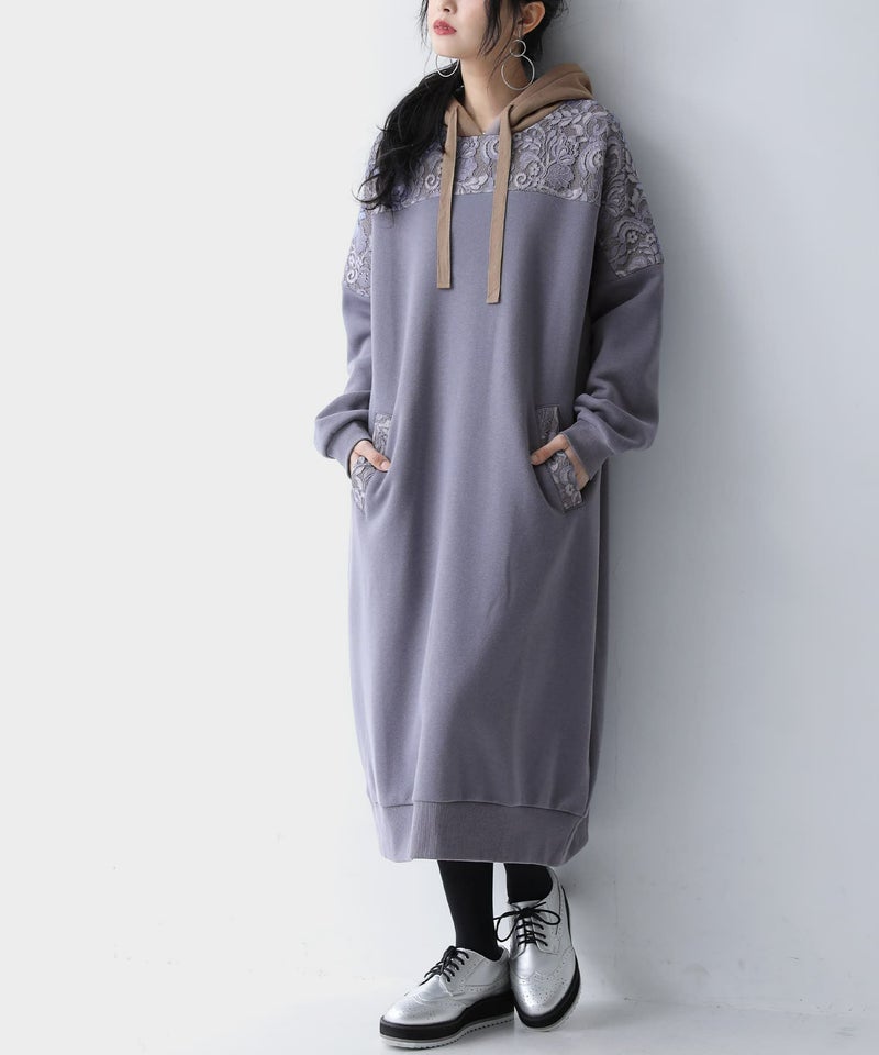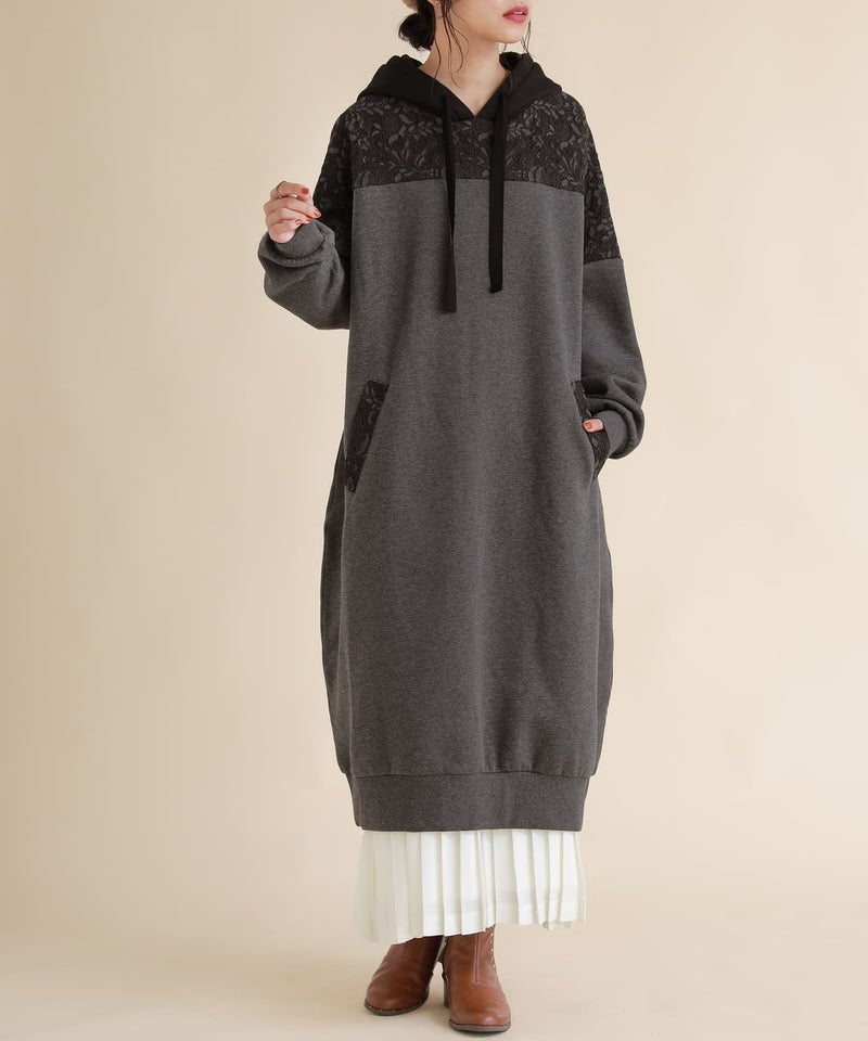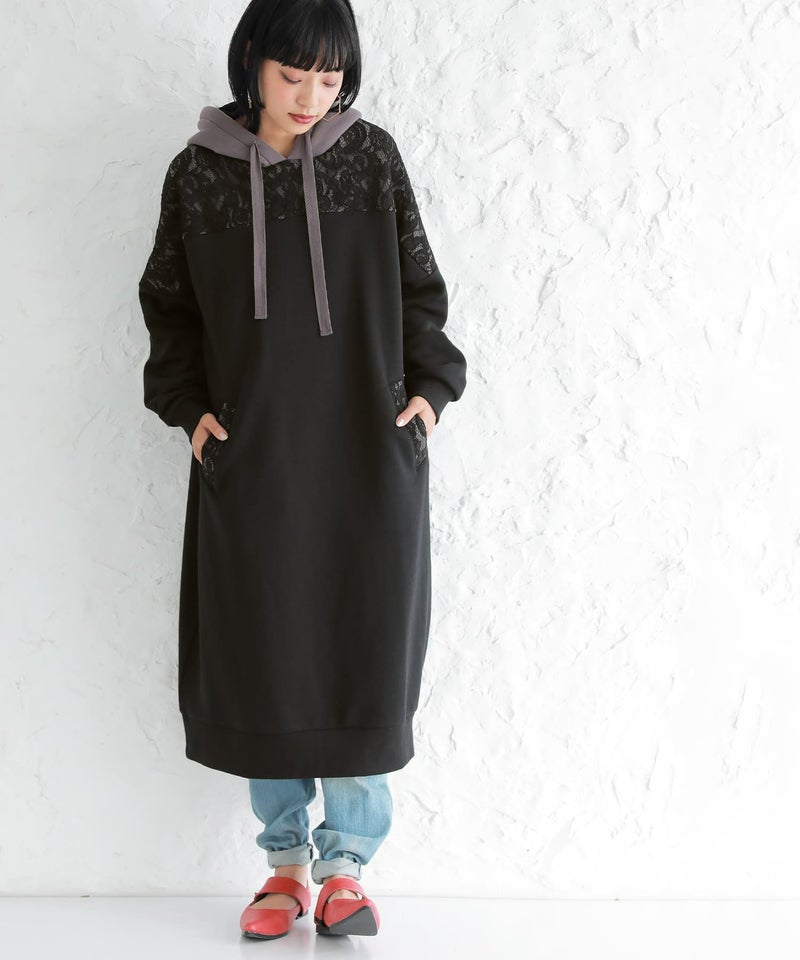 センスを格上げする、繊細レース&大人め配色パーカーワンピース♪